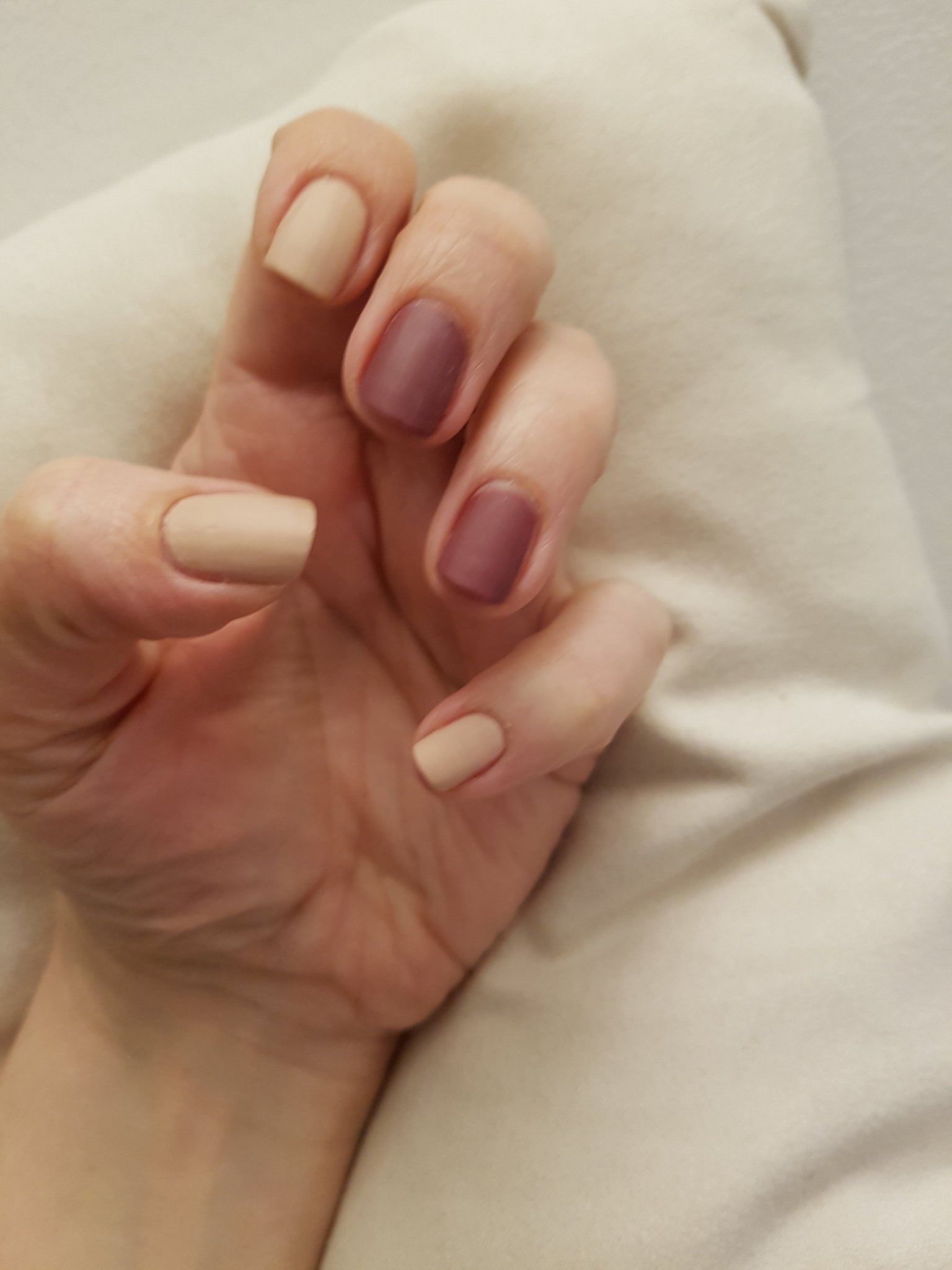 П.П. Лакът на живо е малко по-розов, но никак не ми харесва. Някак ми е като блажна боя, плосък, няма дълбочина. Средният пръст е с мат топ лак на ГР, а другите - ГР quick dry