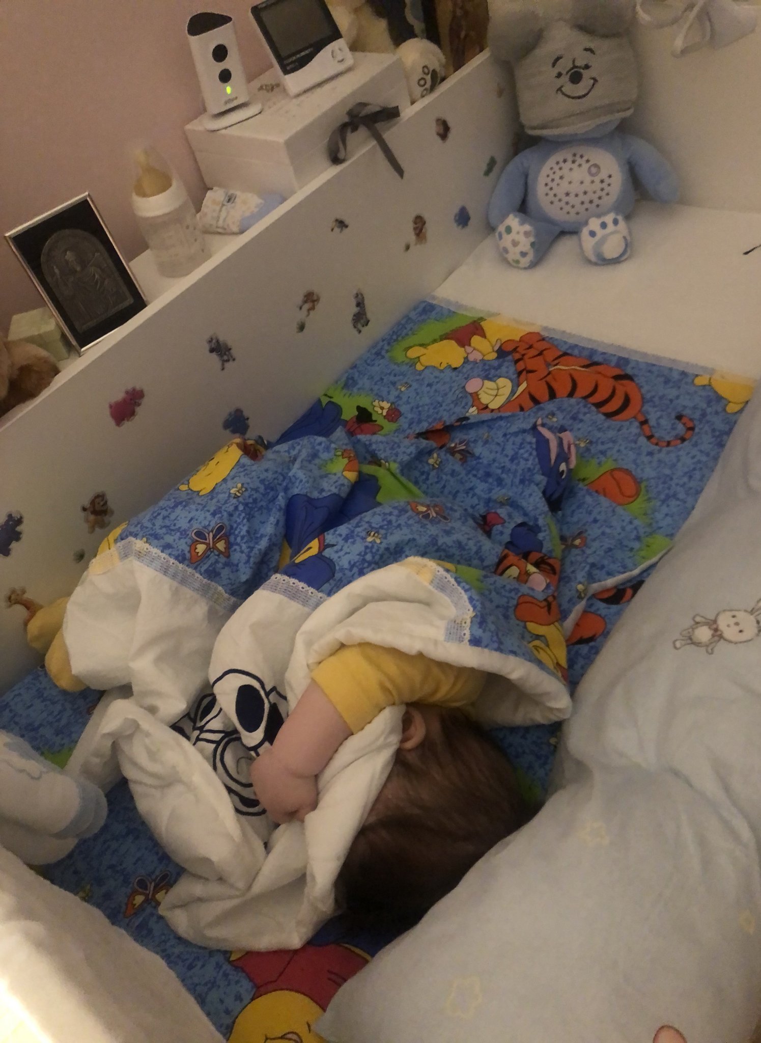 Два пъти сега и тя се беди с плач, а е сънена или заспала, много е жална, единият път беше гладна, хапна и заспа.