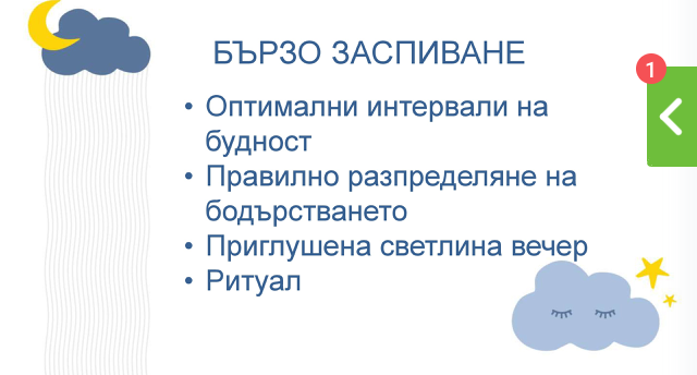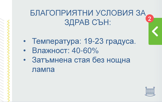 Какво ми беше интересно на мен: каза, че е хубаво да прекарват максимално време на естествена слънчева светлина. Моето бебе обича да спи в количката. Тя каза, че е хубаво поне 15-20 мин да будува навън. Също така вечер преди лягане последният час да бъде на приглушена светлина.