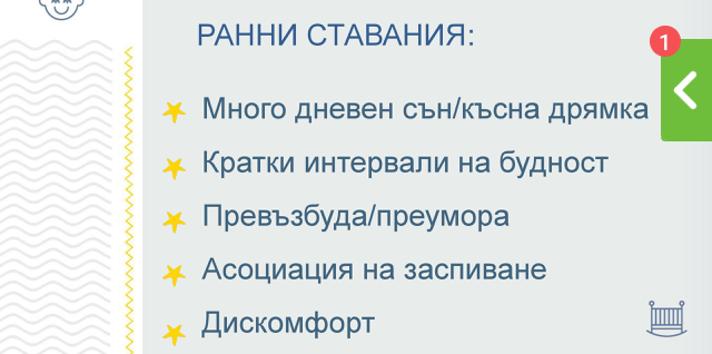 Като ви слушам за дрямката слвд 18.00ч.при нас няма как да станв имашв период дето спеше между 19.00-20.00ч по 30мин и започна да не иска да спи, но и преди 22ч.не ляга и беше ужас и няма заспиване. Сега пак си я прави дрямката и към 21.30 иска да яде и се успива. Мале мойто бебе не иска да чуе за леглото си колкото и да е дълбоко заспал оставя ли го там веднага се е събудил и е голям рев... Как ще заспива там не знам а пък сам да си заспи няма шанс