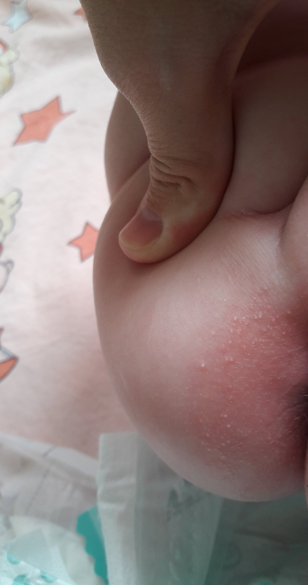 И при нас, на едната девойка й се появиха пъпчици от вътрешната страна на бузите на дупето. Незнам от какво може да са. Последно въведох тиква. Все си мисля, че ако беше от храна, щяха да са повече места. А те са само тук.