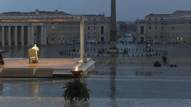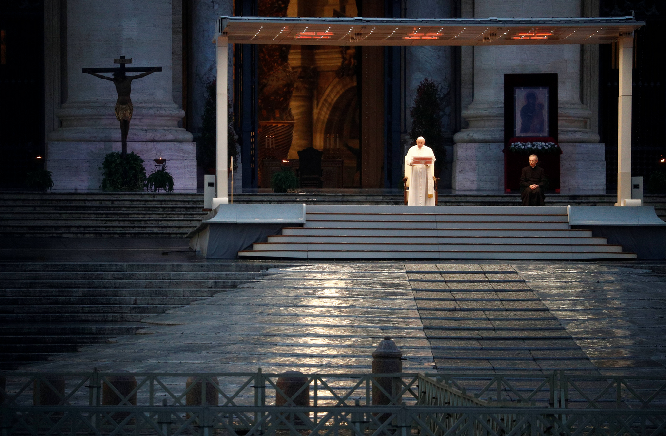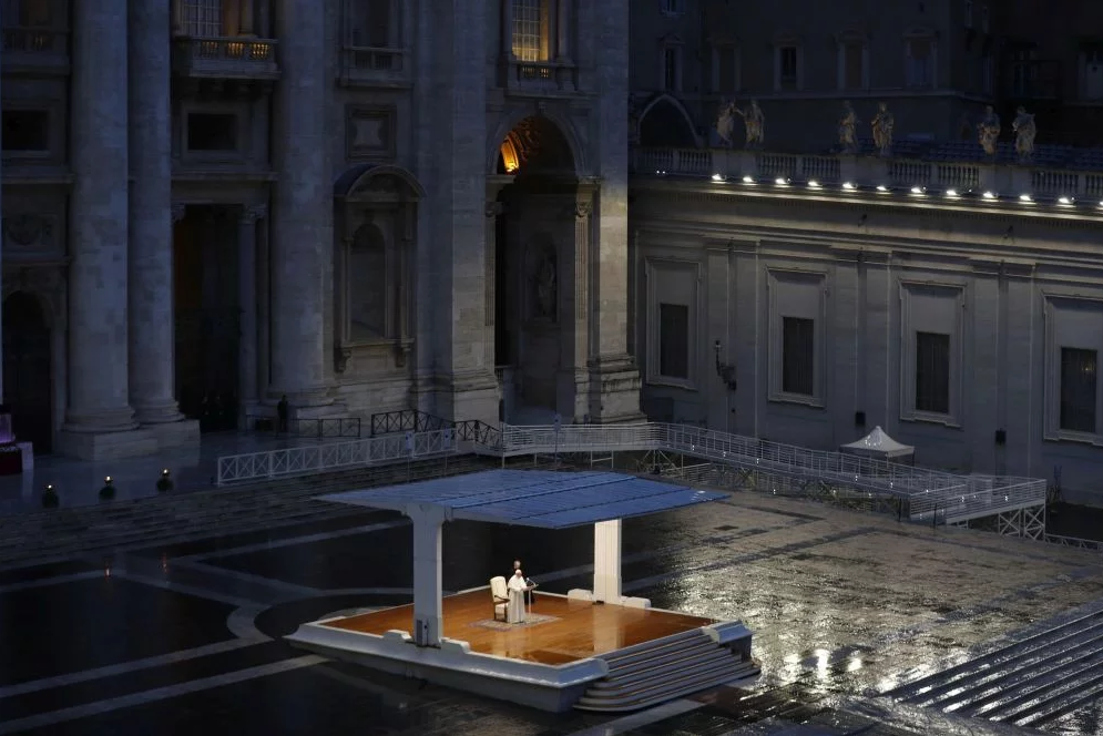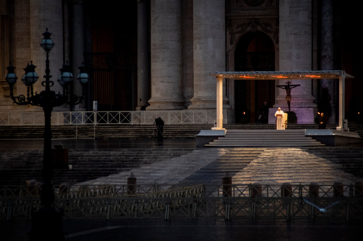 Вчера папа Франциск отправи извънредна благословия Urbi et Orbi - (“Към Града и към Света”) - нещо, което обикновено прави само на Коледа и Великден. Сам, пред празния площад "Свети Петър", на фона на падащия дъжд, виковете на чайките и на минаващи линейки. В молитвата папата призовава: "Умоляваме те: Събуди се, Господи! Не ни оставяй на милостта на бурята“.
