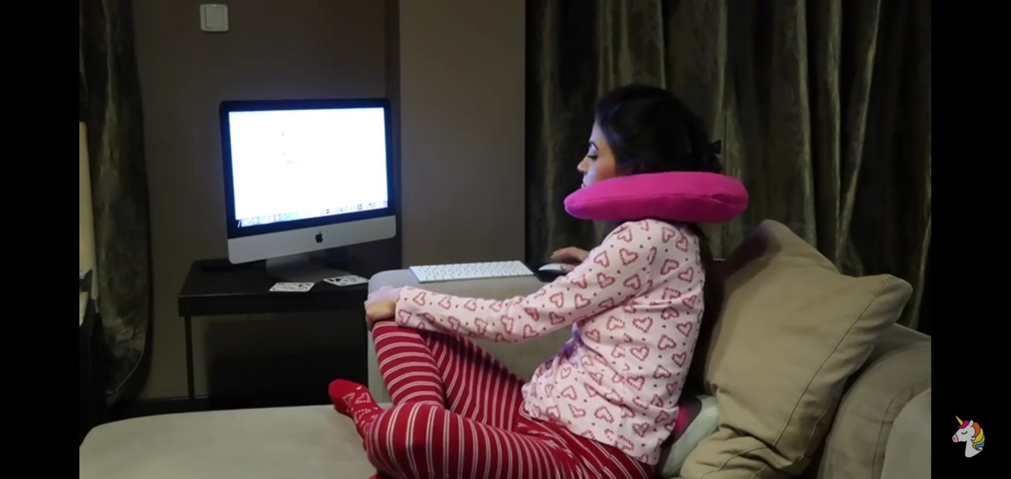 Моля, кажете ни кой нормален човек стой на врата с възглавница за път у дома и работи така на компютър? ВалерИ е тъпо парче