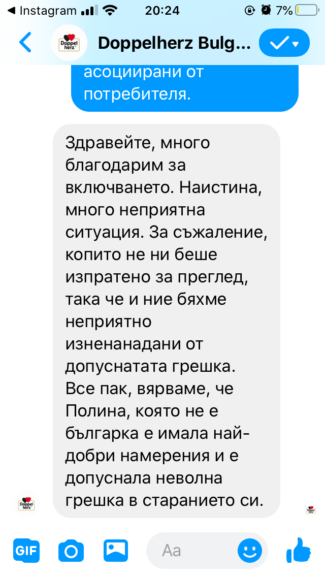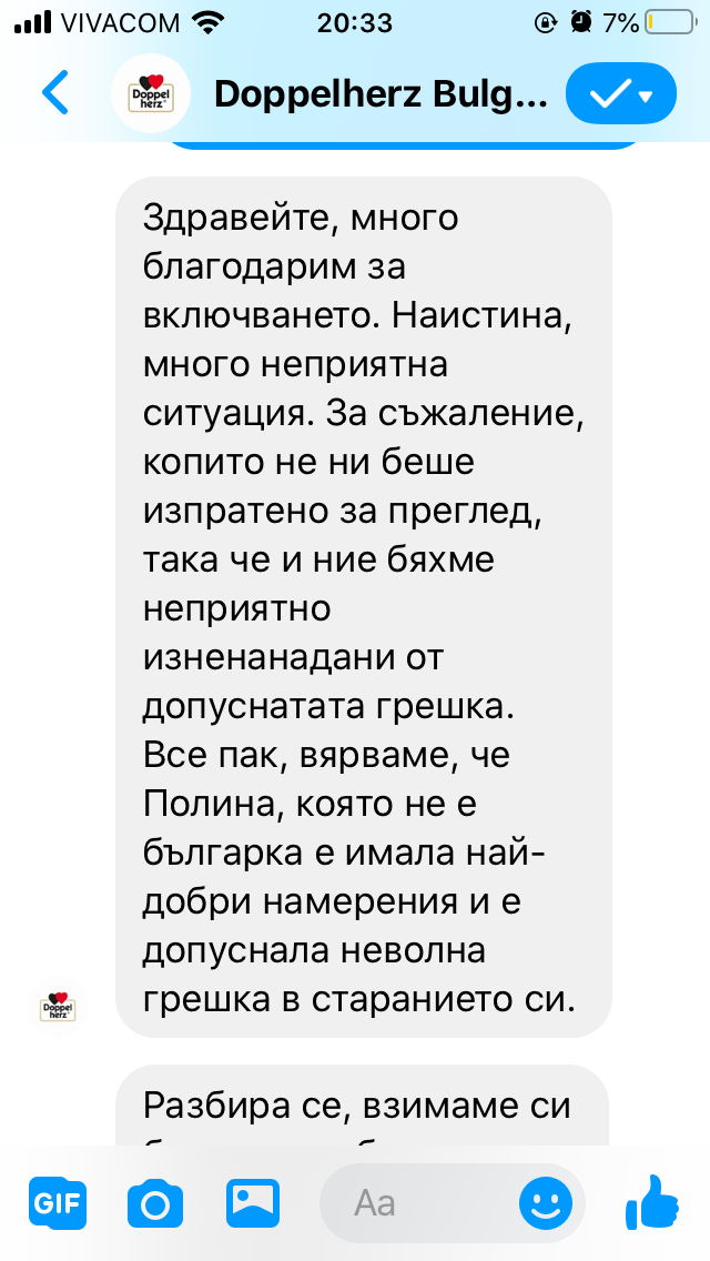Много ме ядоса Полина, писах на Допелхерц и веднага ми върнаха отговор с оправдания, ето приложено кореспонденцията: