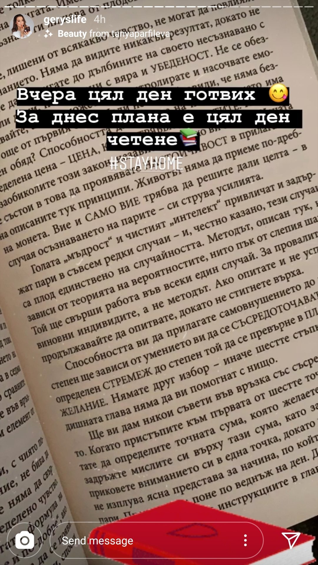 Сега пък само щяла да чете, призовавайки останалите да останат вкъщи и да последват примера й...