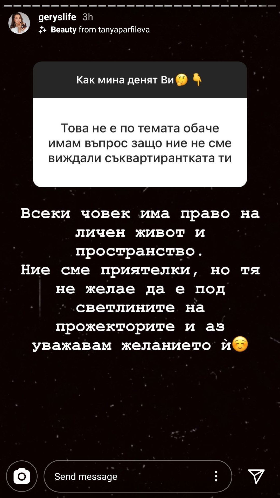 Тази се вживява в ролята на гореспоменатата Наоми май. С разликата, че едната ще изплаща нейното Бърбери няколко години, а онази го хвърля след употреба 🤣Какви прожектори, дупнишката Кардашиан да не е объркала Благоевград с Калабасас? Като я гледам какво чете, никак не е изненада нищо при нея.