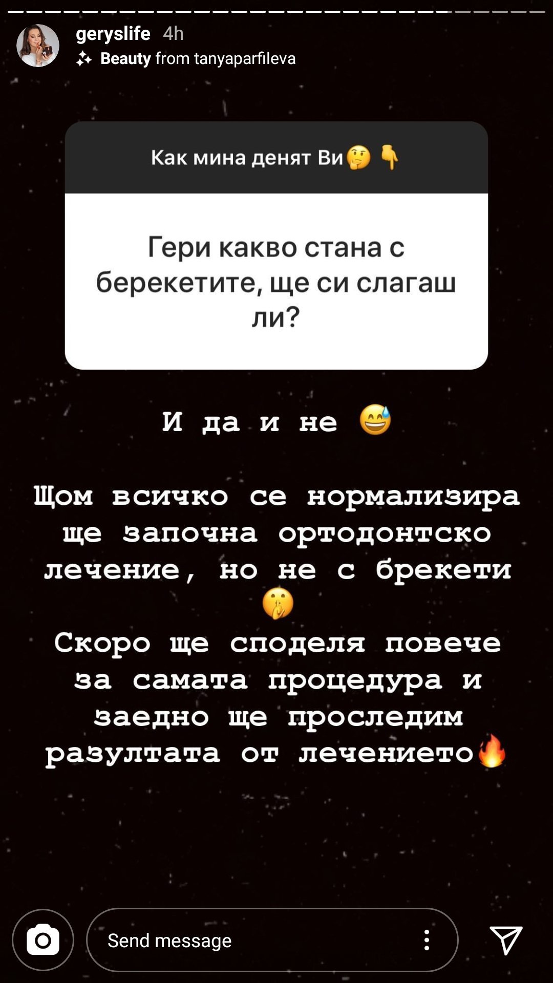 Явно ще слага шини като на Ая и Денина... хубаво е да оправи кариесите първо, че с това запечатване за 20 ч/ден ще изгуби всичките зъби...