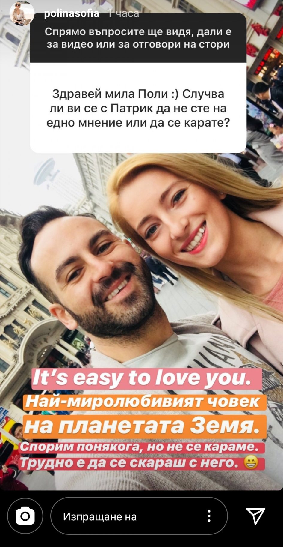 Полина удари в десятката с Патрик. И бизнес й направи, и сума ъпгрейди плати по нея - лазерна операция, устни, брекети и тн. Преди него си беше обикновено момиче, което пестеше от фризьор и сама се подстригваше, боядисваше и правеше терапии с горчица на косата си, абсурд да инвестира пари за онлайн бизнес с Китай или да даде 10к за операция на очи плюс инвизилайн на зъбите. Пожелавам им да са все така щастливи, все така да й угажда и носи на ръце. Според мен са се намерили и се правят щастливи един друг. Независимо от кусурите.