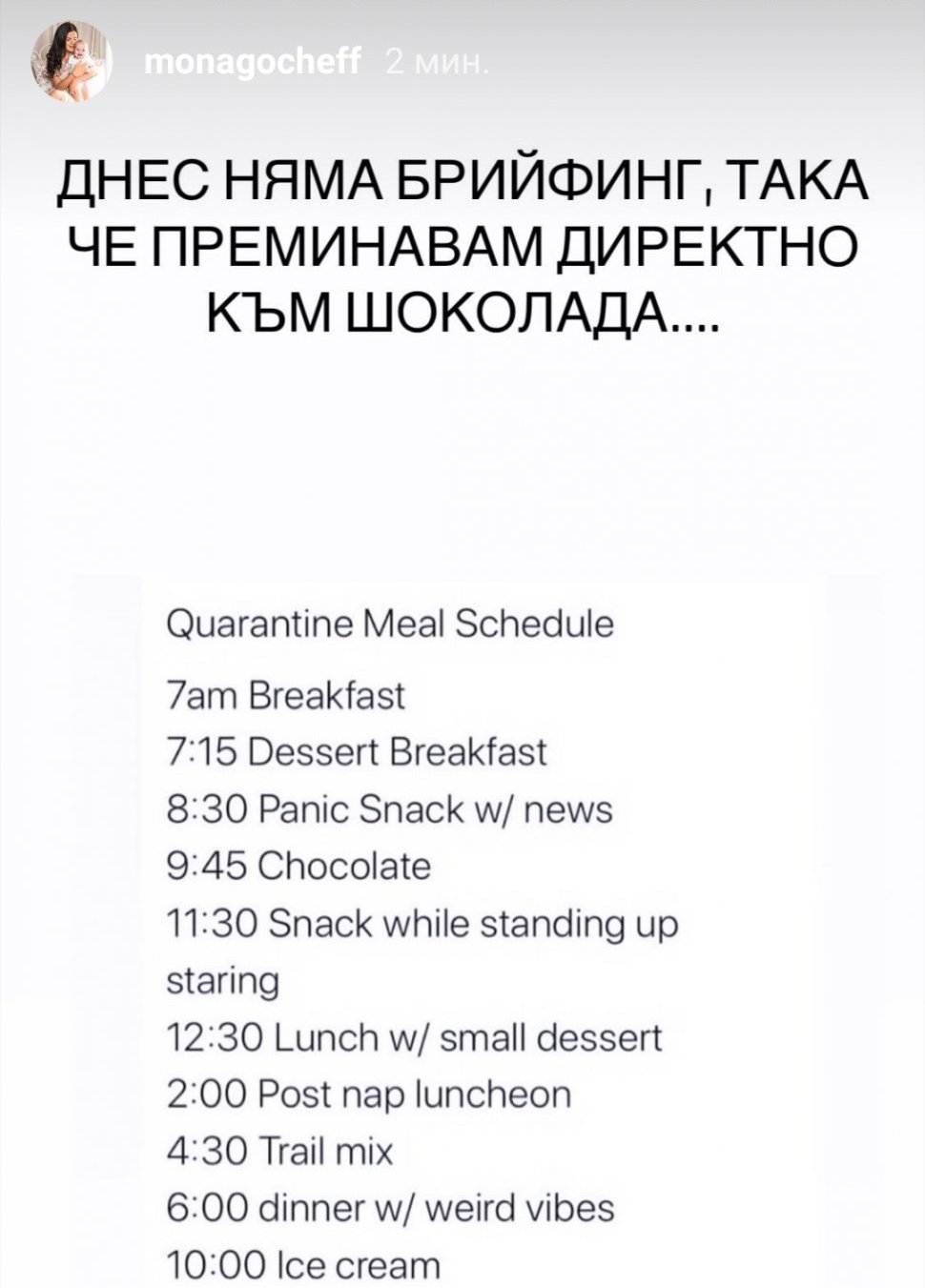И аз така, седя си вкъщи с златните синджирчета и пръстени,та като търкам тоалетната и готвя мусаката да съм по-красива😂😂😂