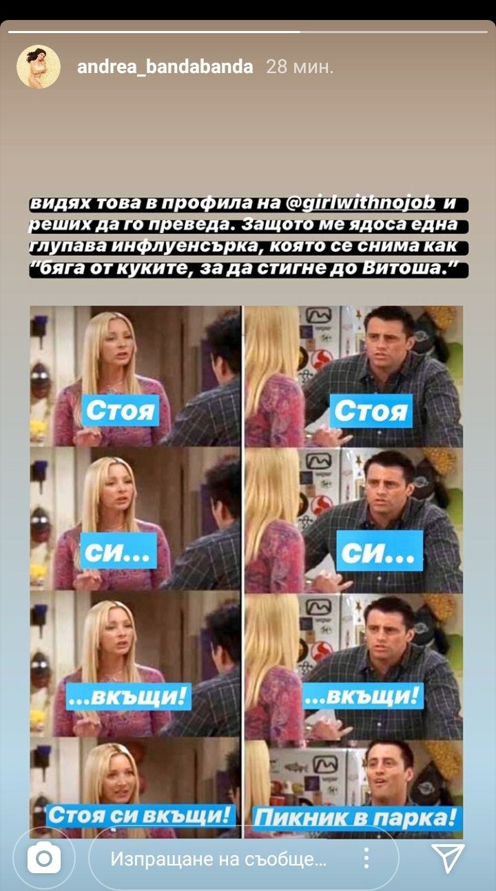 Струва ми се, че бързате с "фалита" на нашите инфлуенсърки. Поне тези, които се издържат само с това. Съмнявам се Валката, Пепе, Ивана, Алис и сие да пострадат - първо, че те имат гръб от някого - дали роднини или половинки; второ, като свърши извънредното положение, точно при тях ще хукнат компаниите да рекламират и да раздвижат продажбите. Кафенетата и ресторантите ще се убият да ги канят на брънчове, за да напомнят, че са пак в играта. А големите брандове въобще няма да усетят кризата така, както малките, така че рекламките на Данон, Нивеа и т.н. ще си вървят.