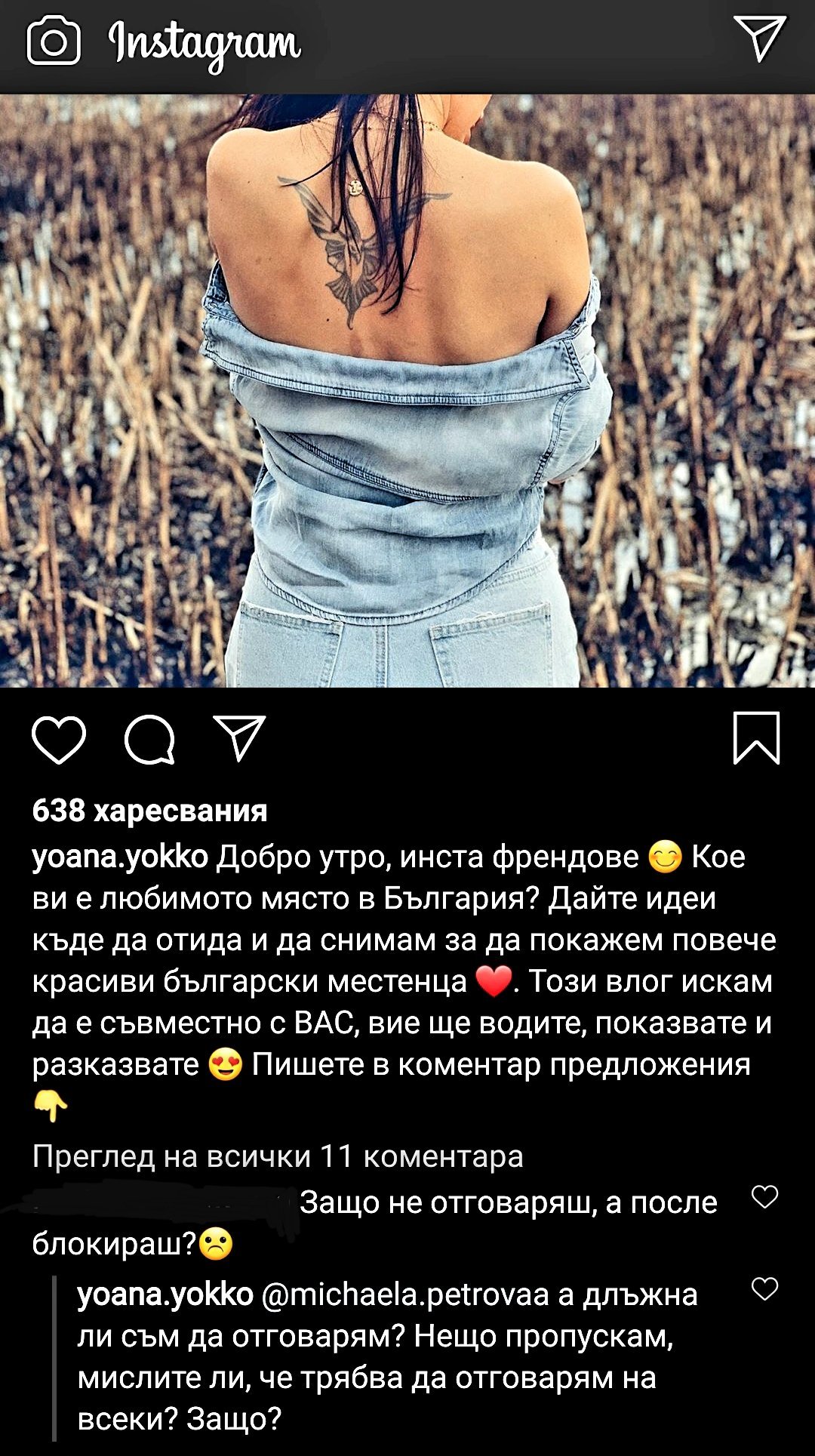 Също да се включа и по въпроса за неграмотните им постове.. Значи аз на работа като пиша email го прочитам няколко пъти, проверявам за грешки, ако в нещо не съм сигурна проверявам в гугъл и тогава пращам. И това е покрай останалата ми работа, която върша. Но и в крайна сметка не отнема и толкова време. А за тези хора, които работят инфлуенсър, и имат да постнат 2-3 кратички постчета на ден излиза, че това е невъзможно... не мисля, че имат извинение за грешките. Като пиша нещо в нета или във форум не проверявам толкова зорко разбира се, но когато касае работата ми са други стандартите.. та мисля, че и за тях би трябвало да е така, ама..