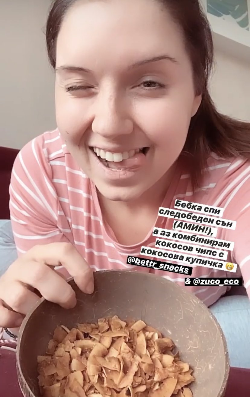 Иначе другото са ПиаР пратки. С надеждата бебето да не се събуди хрупа и чипс на Гривас, за които доста време се чудела, дали не са Гравис. И пратка с бебешка козметика, като Маги казва, вече няма да експериментира с бебешката козметика...