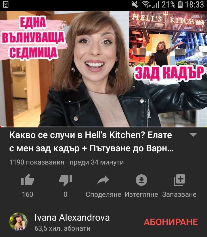 Иначе и за видеото да кажа нещо .Ивана ми беше много тъжна,обезверена,отегчена и личеше от километри,че насила го снима.Дори и тона и беше един такъв апатичен.Лицето много издава,Ванче!След като нямаш мотивация и желание не прави насила нищо,не се получава.И още нещо повтори 4-5 думи (които забравих,но едната е не знам)по хиляда пъти,не те ли издразни и наби в главата докато го обработваше?