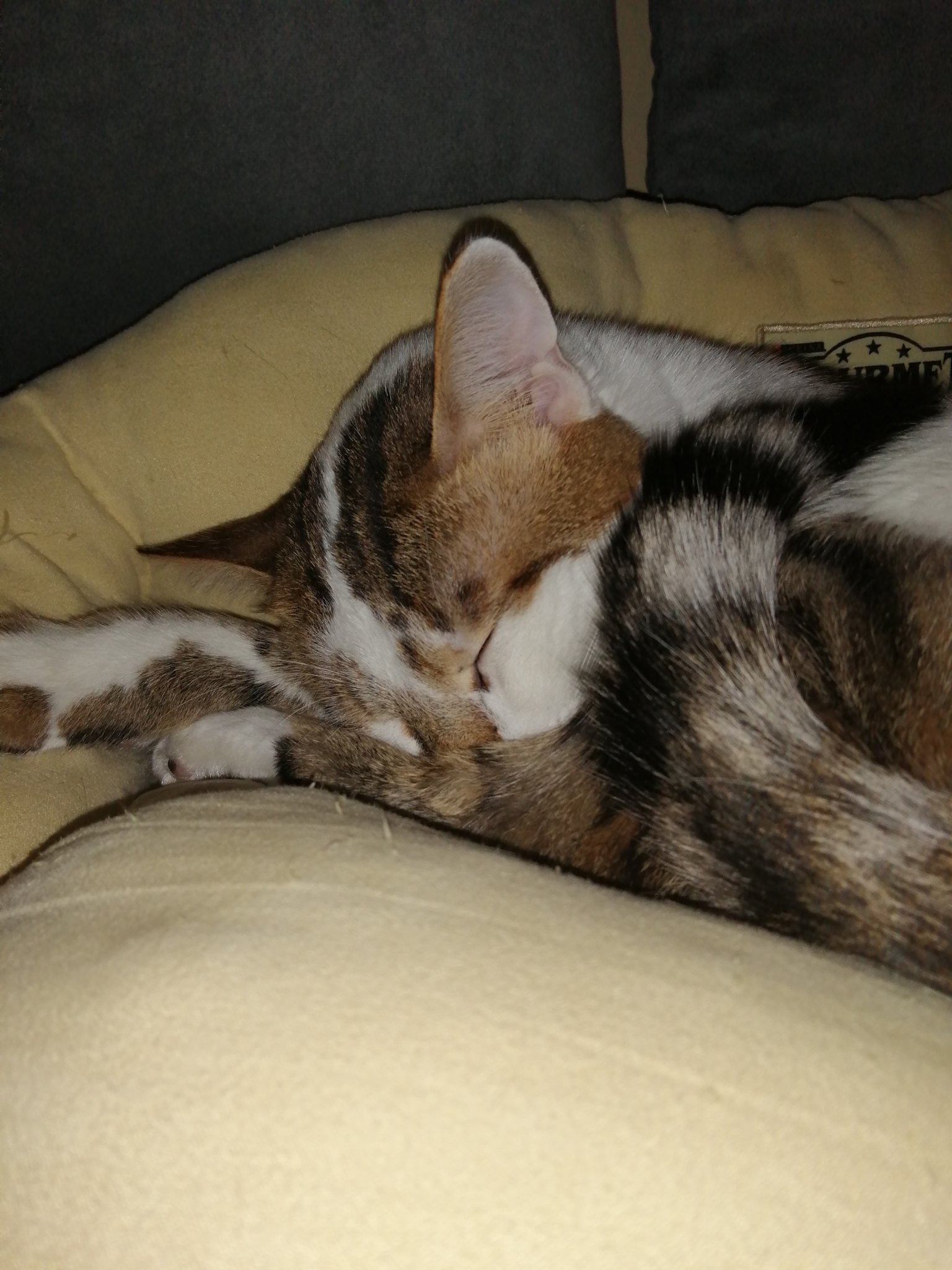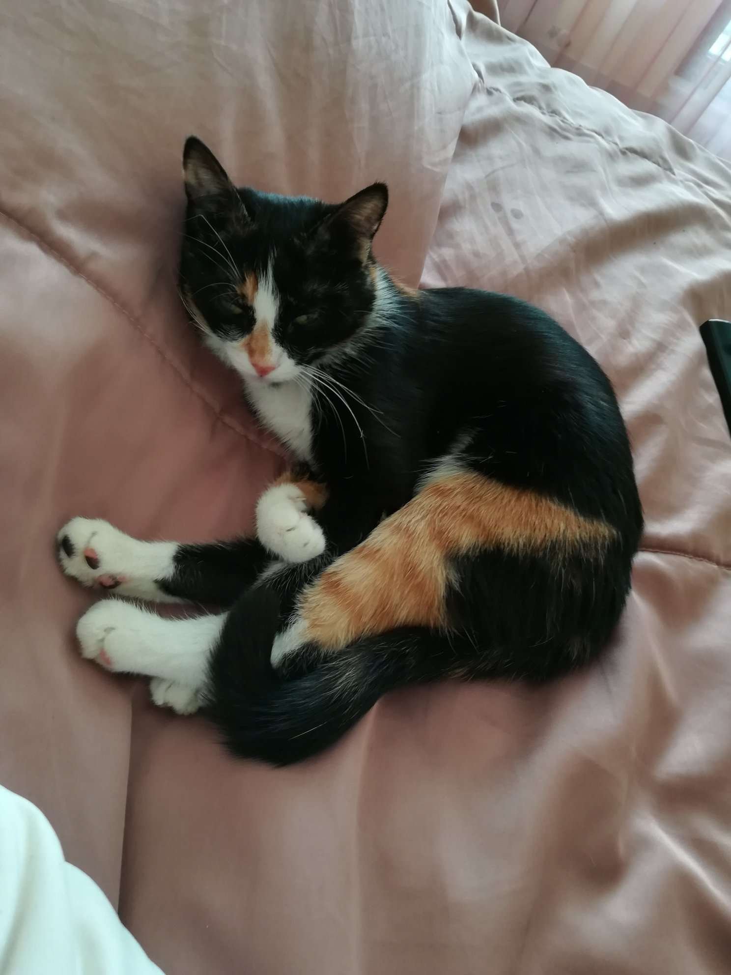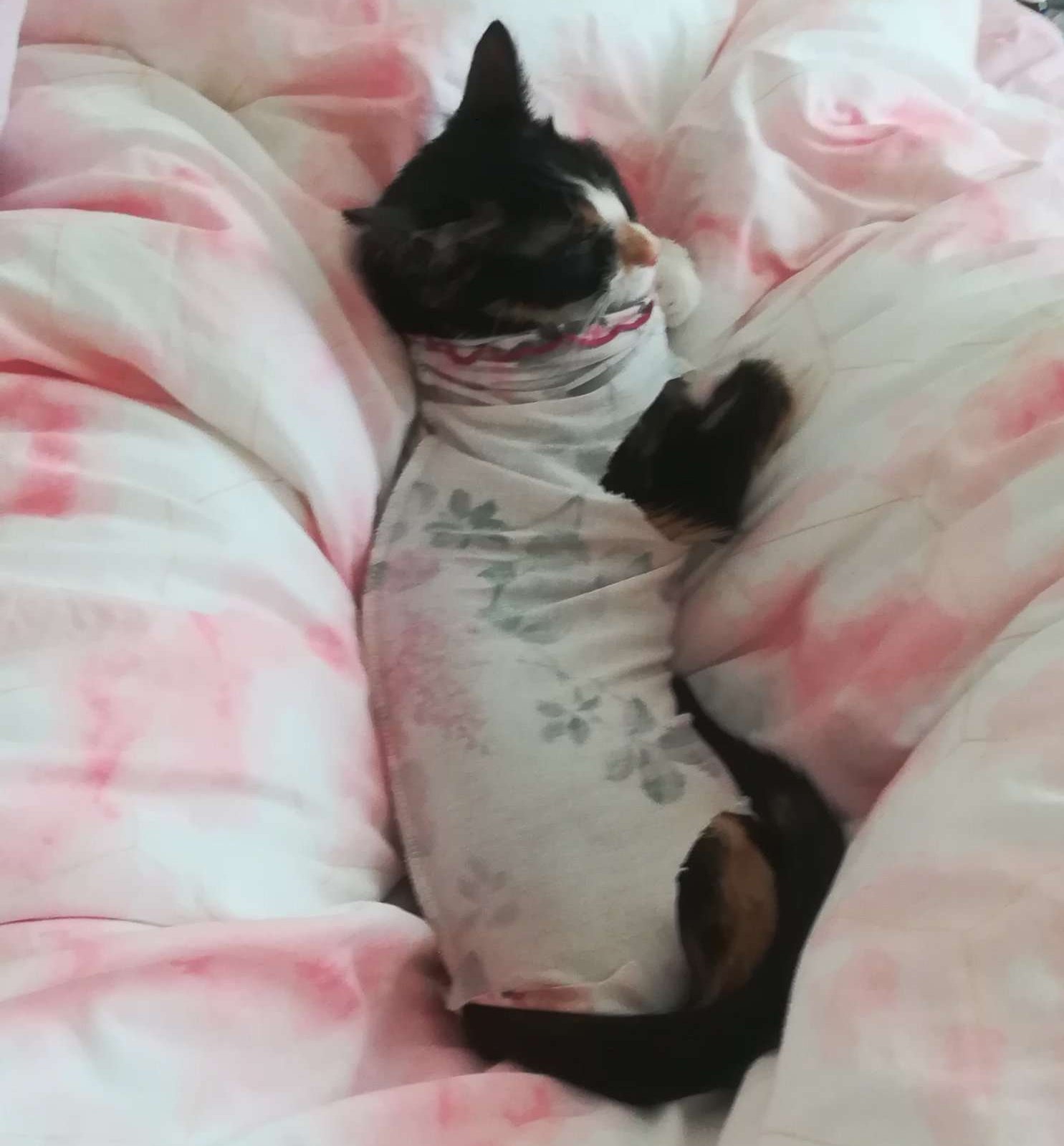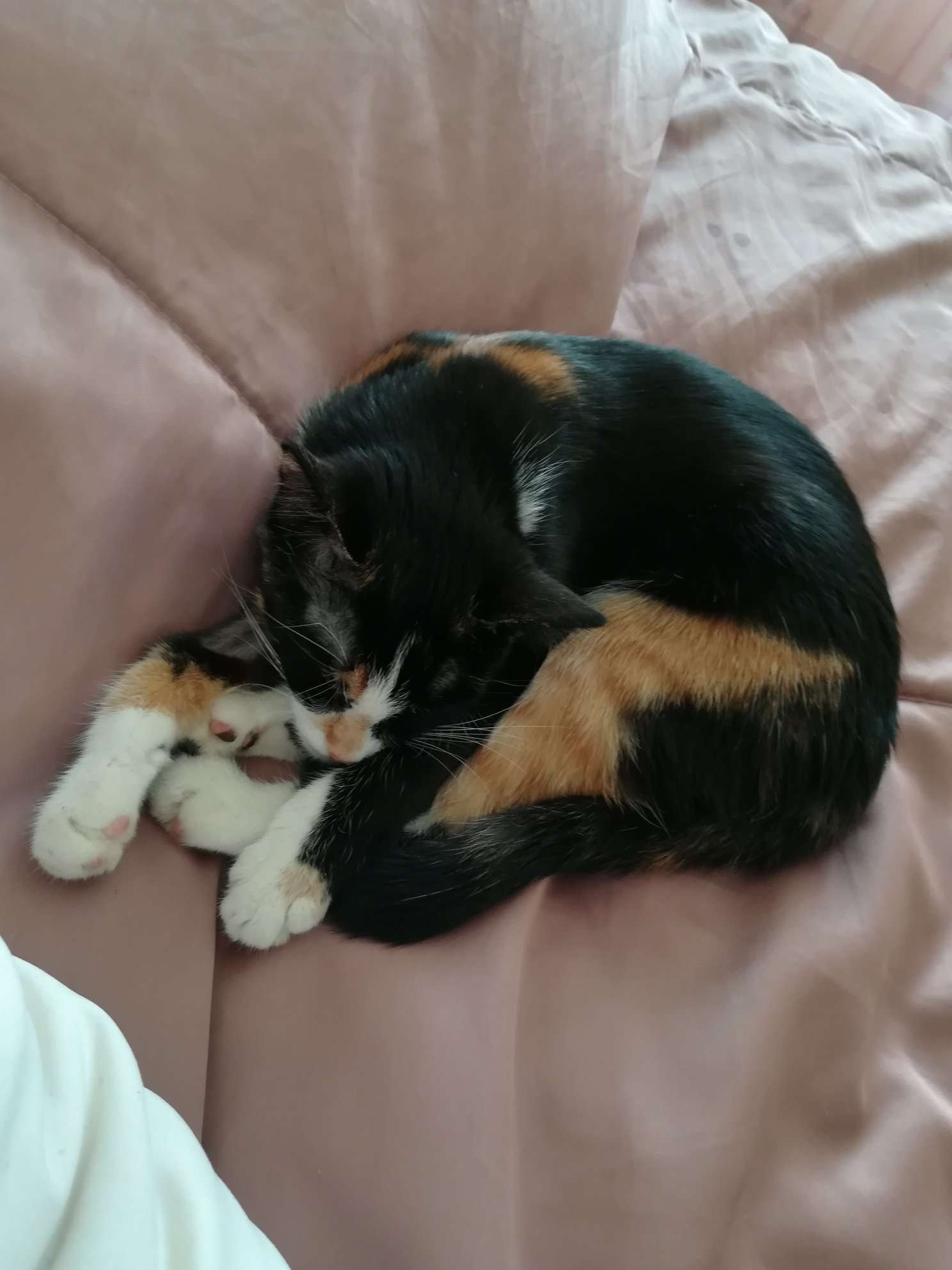 Вече си е напълно добре и утре ще ходим да й махнат конците. Стана си същата сладка кукувица, която ми мърка, хапе, лигави. Сега аз работя и тя ми подмага по сънната система
