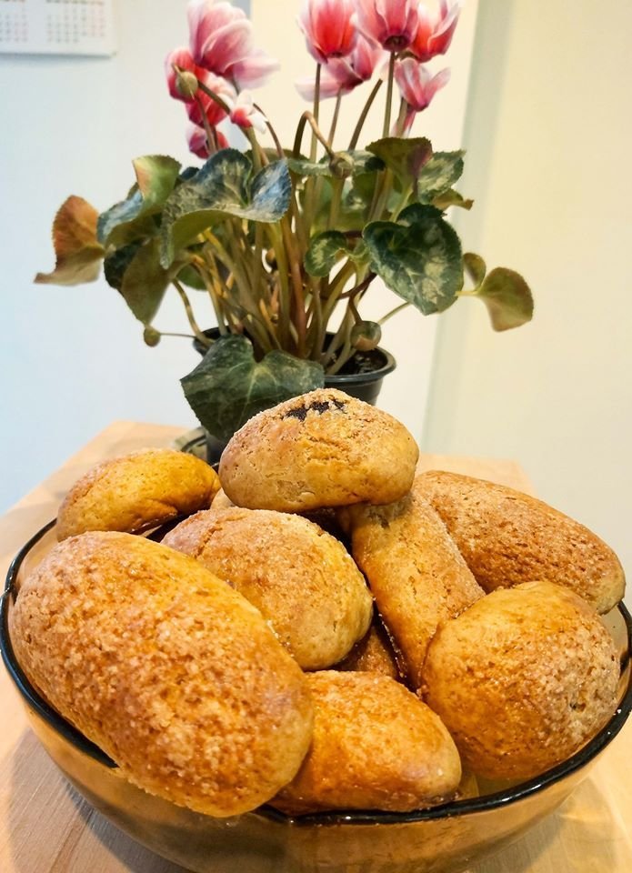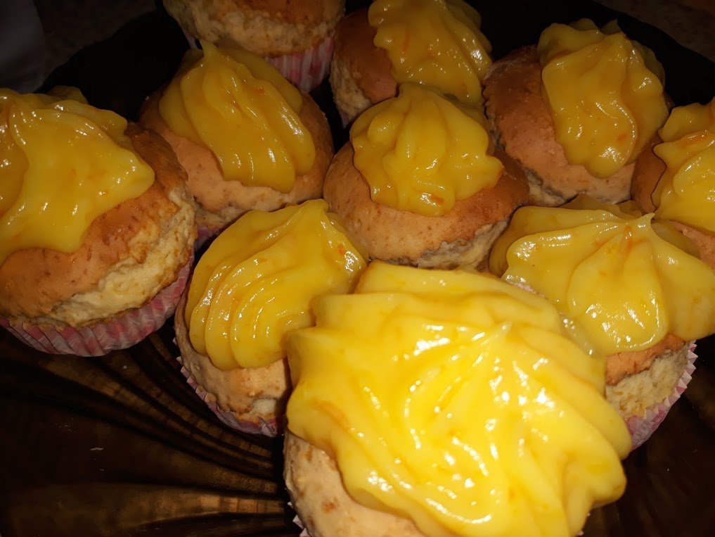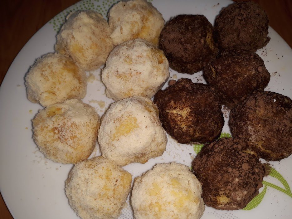 Боб, мъфини с портокалов крем, и бонбони от мъфини и крем.Понеже мъфините не се отлепваха от хартията и внука изяде само горната  част, изроних и изстъргах останалата  част от хартийките, смесих с останалия крем и овалях в бадемово брашно и какао.