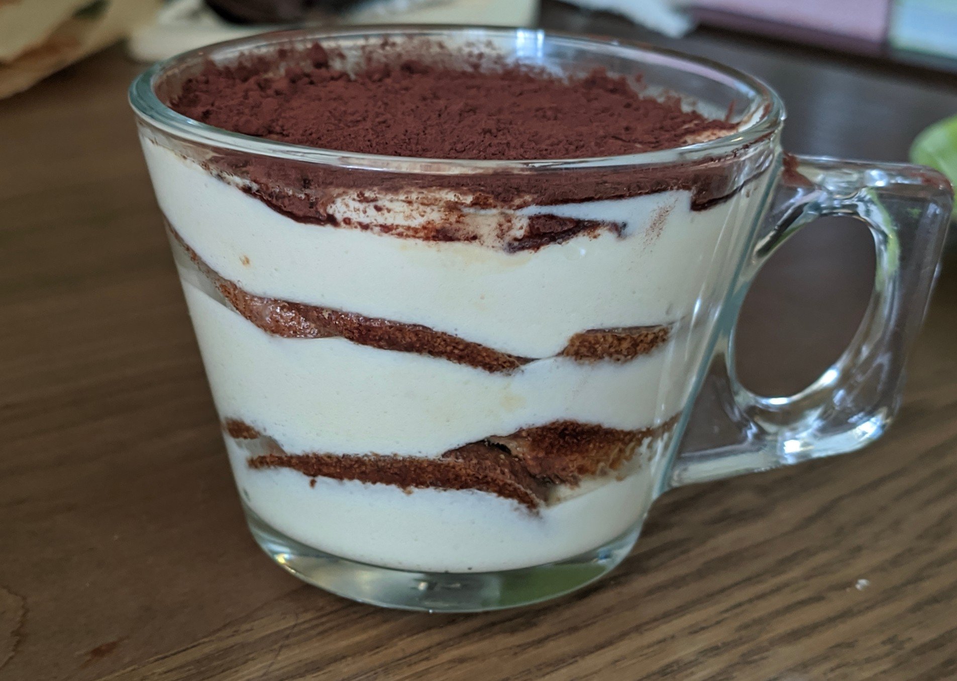 (Не)тирамису - без захар и брашно. "Бишкотите" са с бадеми и банан... и са кръгли Grinning, кремът е с мед.