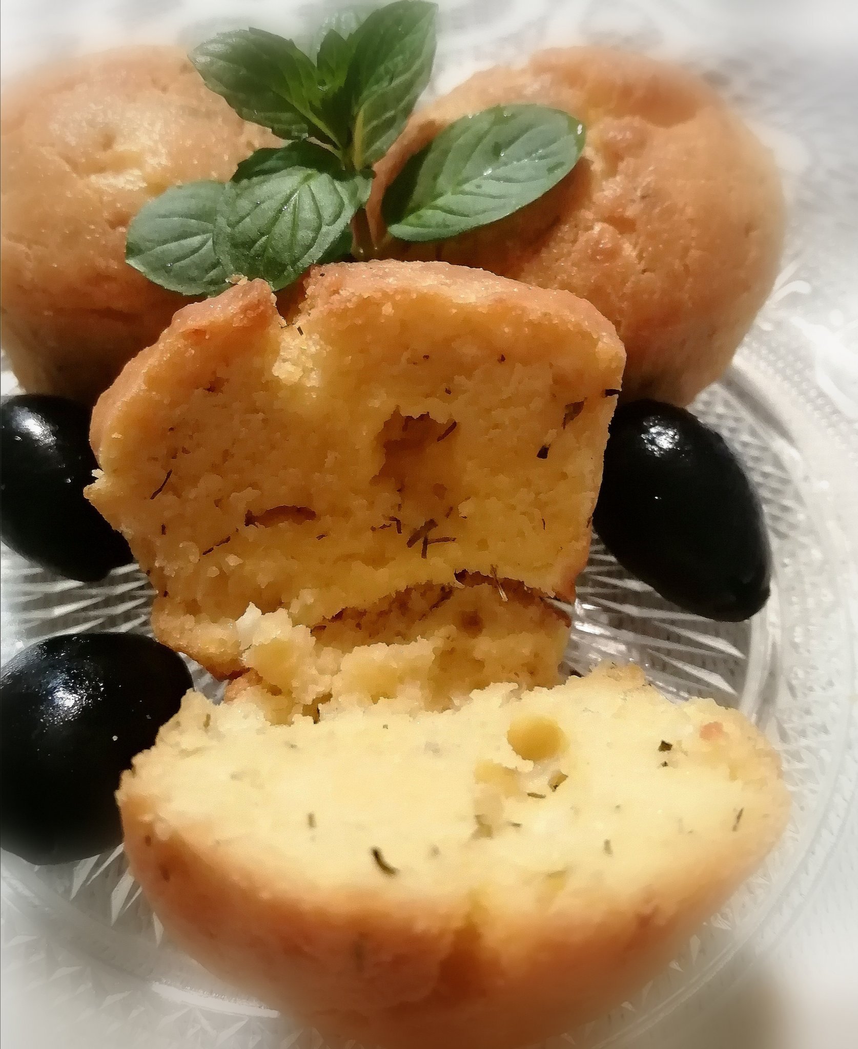 И солени царевични мъфинчета с копър, сирене и малко чесън: