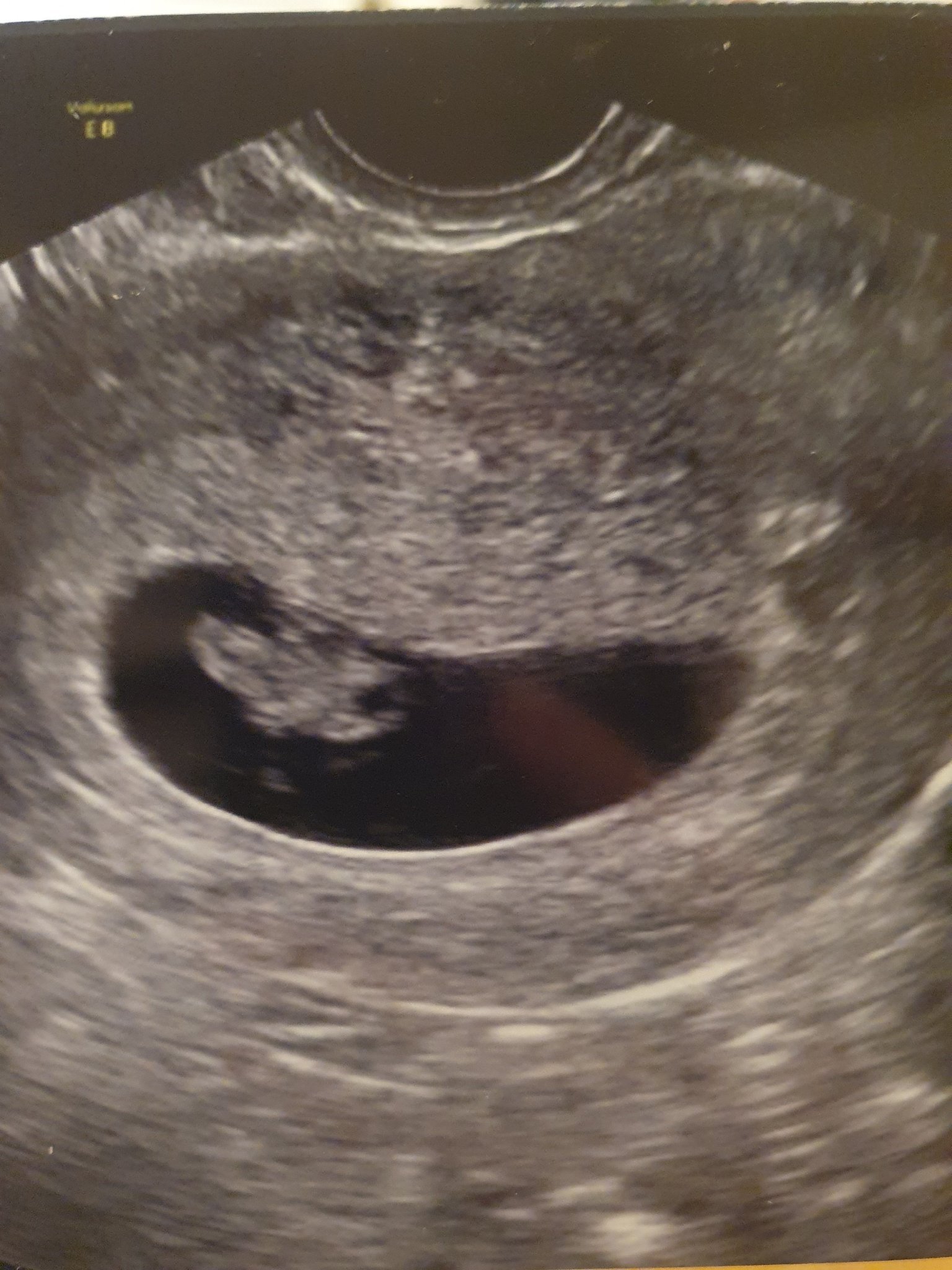 Иначе вчерашният преглед мина чудесно, с доста дълъг цикъл съм аз, а бебето отговаря точно на 7с6д, това не знам как се е получило 😄 както си лежа и с периферията видях примигване и почнах да рева 🤣 викам " Има сърцеее", много ми се смяха. Аз бях отишла отчаяна и подготвена за лоши новини пак. Имам си най-красивата снимка ❤️