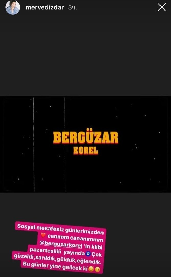Мирай Данер: Привет❣ "Последнее письмо" в восхитительном исполнении моей любимой Бергюзар выйдет в эфир в понедельник! Я получила невероятное наслаждение сопровождать ее. Это были наши дни еще без социальной дистанции. Мы смеялись, веселились, танцевали, обнимались. Жду с нетерпением понедельник.