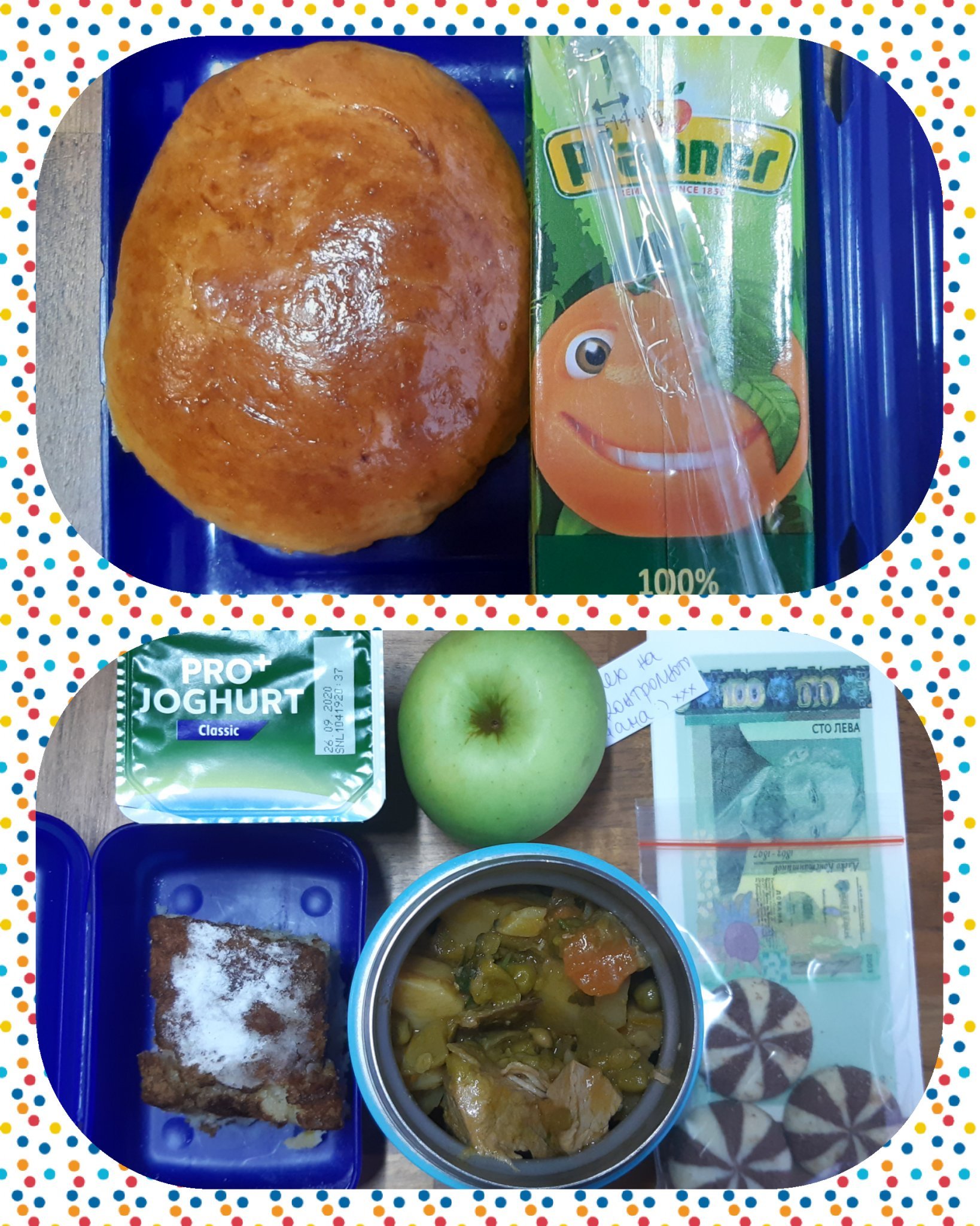 По време на пандемията организацията на училищното хранене може да включва използването на кутии за храна, термоси и хладилни чанти за транспортиране. Родителите също така се консултират с училището относно мерките за хигиена и съхранение на храната, като се вземат предвид препоръките за предотвратяване на разпространението на COVID-19.