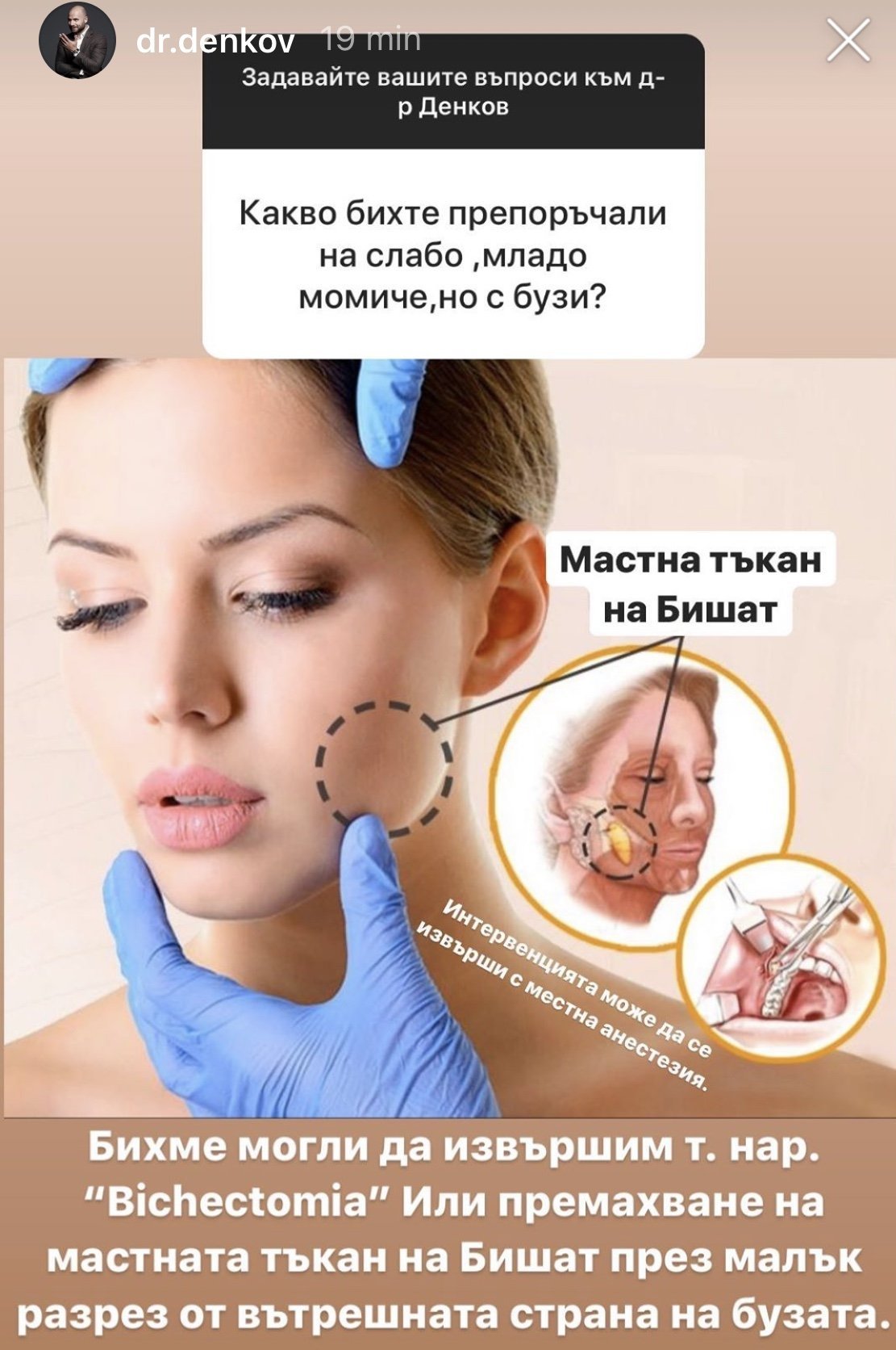 И аз също се интересувах от бишектомия и се разколебах защото кожата още повече ще ми висне. А и с годините ще ми трябва тази мастна тъкан. За сега ще запълнят скулите с филъри и челюста а пък някой ден като имам възможност обмислям едно повдигане на скулите и средата на лицето ще дръпне нагоре