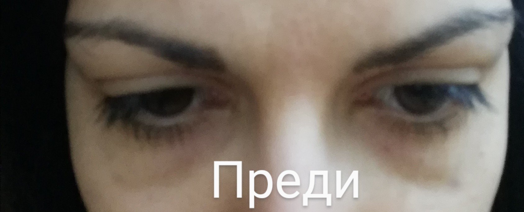 Както писах по-рано, правих иглена мезотерапия на очен контур с Guna. Днес ми беше 4та процедура и резултатът трябваше да започне да се вижда след 3тата (20 дни). Аз започнах да виждам разлика още след втората по отношение на фини линии. Сега виждам и по отношение на тъмни кръгове. Не бих казала, че са напълно изчезнали, но контурът е много по-добре. Опитах се да направя снимки, но не знам колко са акуратни, защото са при различна светлина.