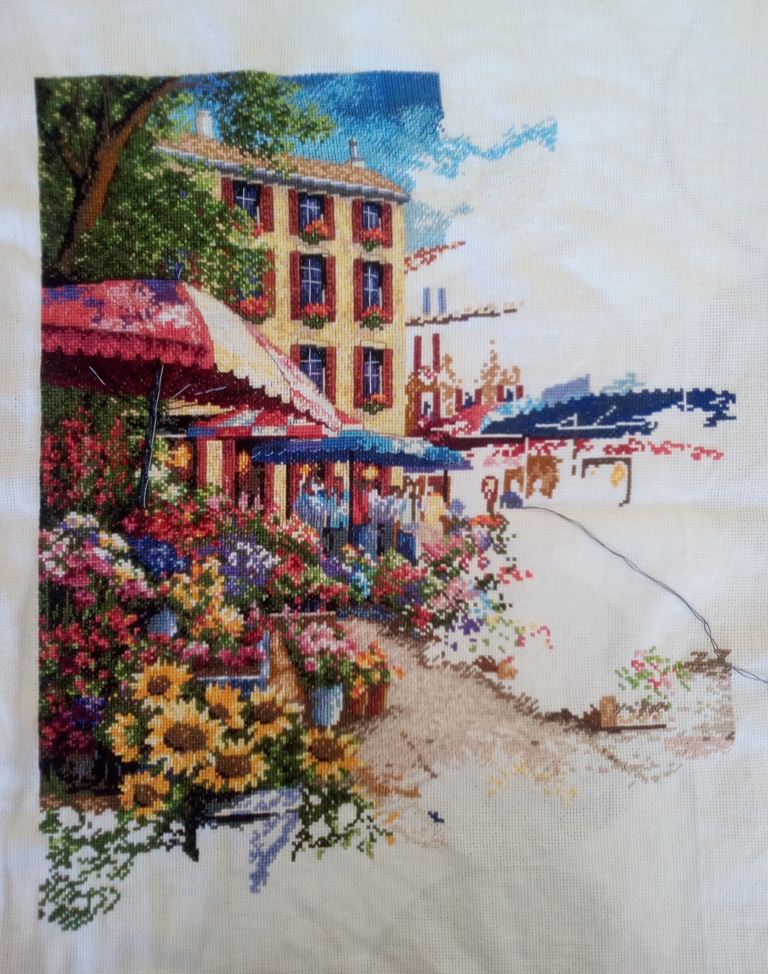 ще кажа, че тоя гоблен ми върви бавно и всеки път имам чувството, че показвам едно и също... А пък аз съм от тези, дето като хванат един, докато не го довършат, друг не поглеждат. Гоблен, де.