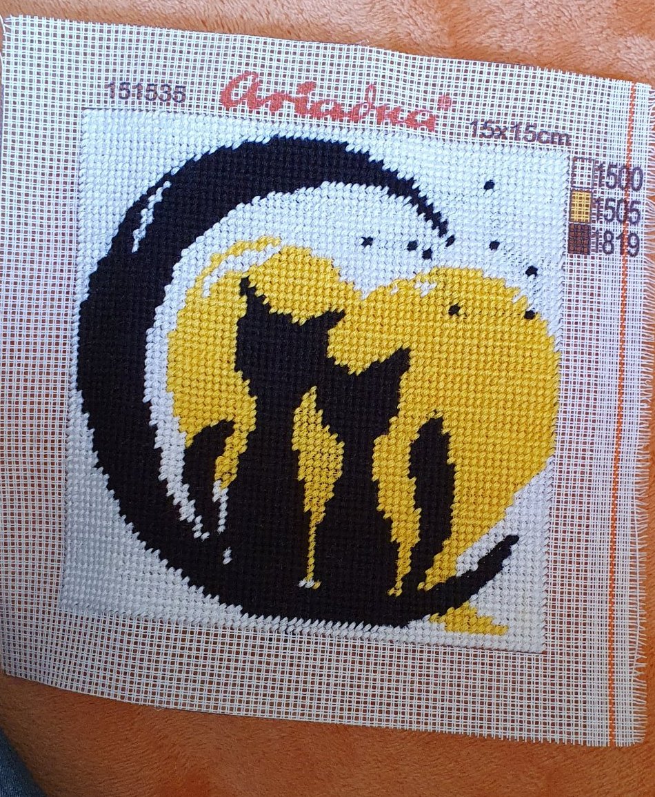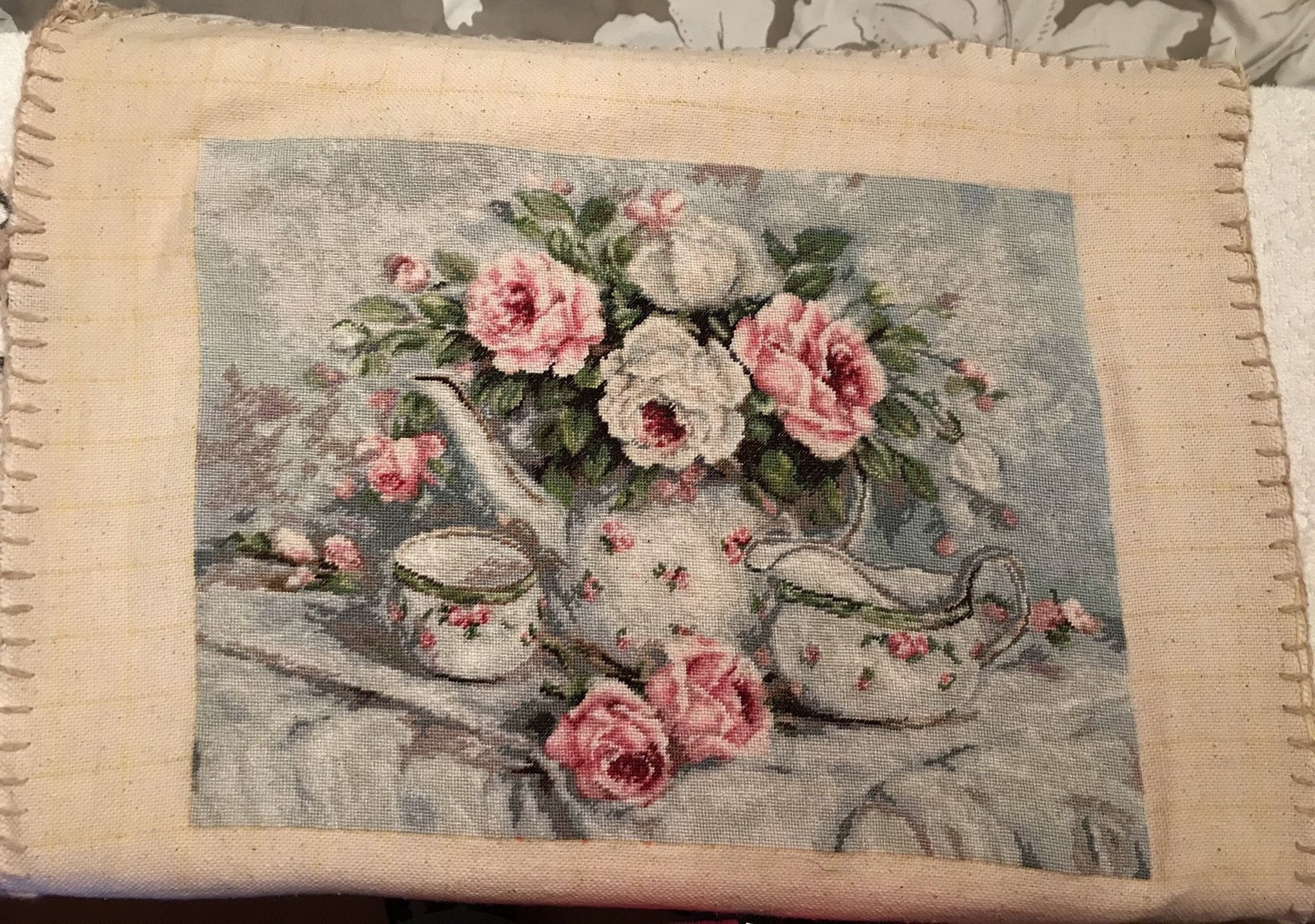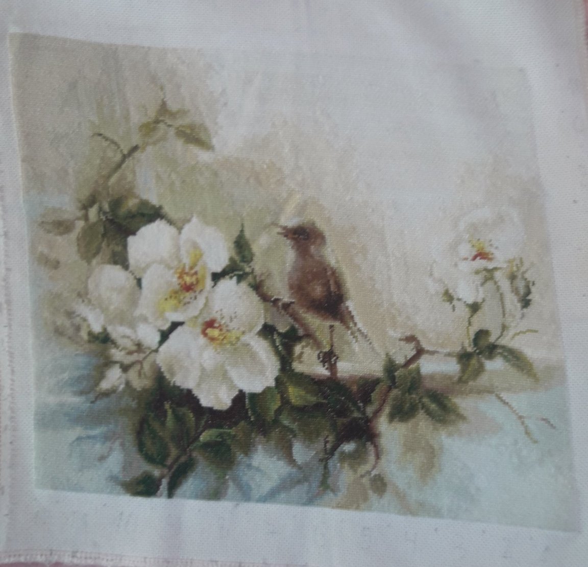 за подарък е. Отвикнала съм да шия гобленов бод и на ситна панама и в комбинация със светлата гама цветове и признавам много ме мъчи, но си я шия с добро чувство, защото знам, че човека много ще я оцени .