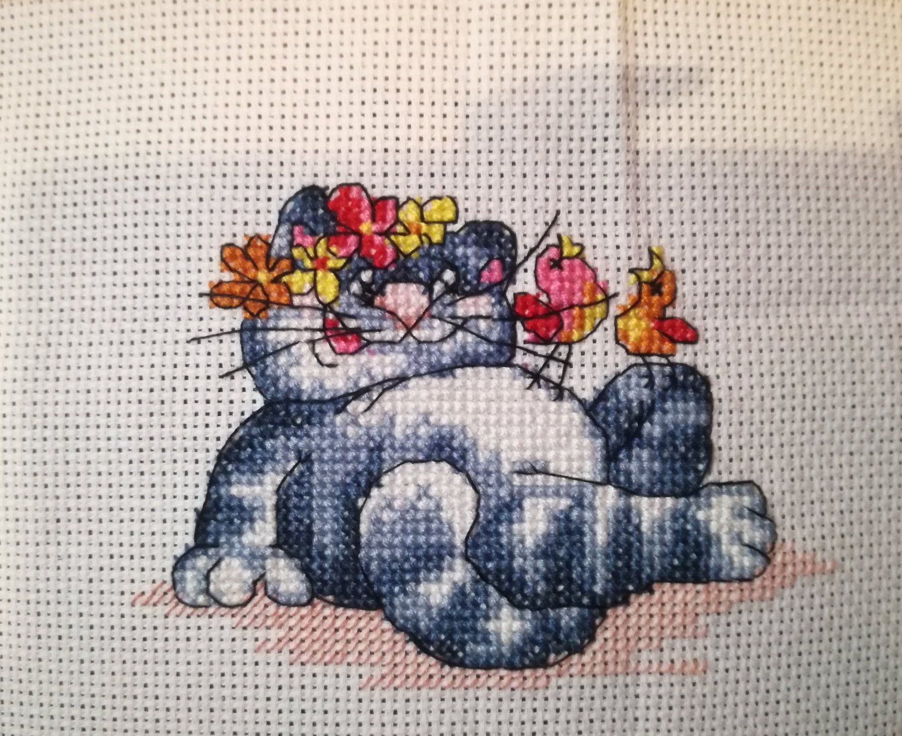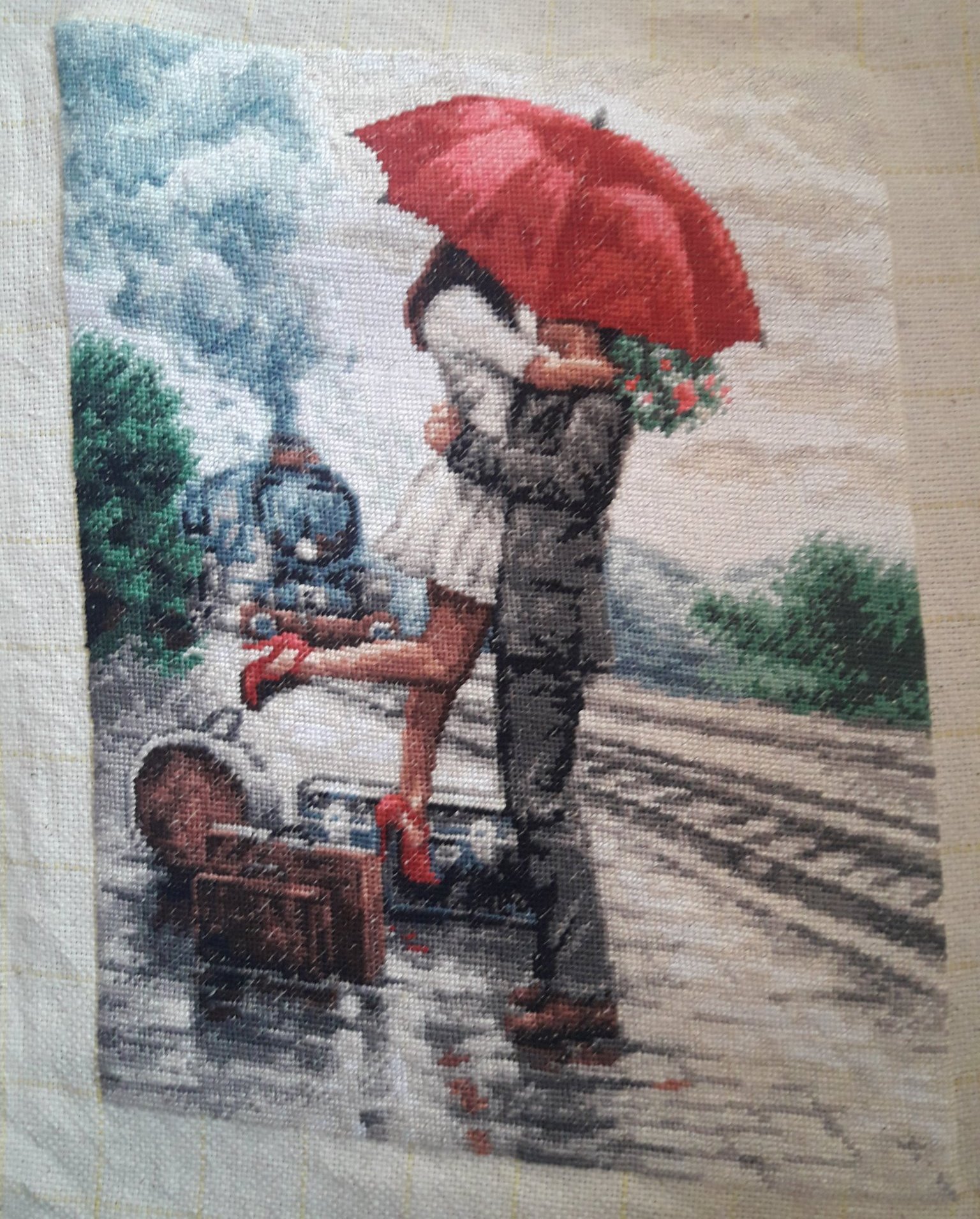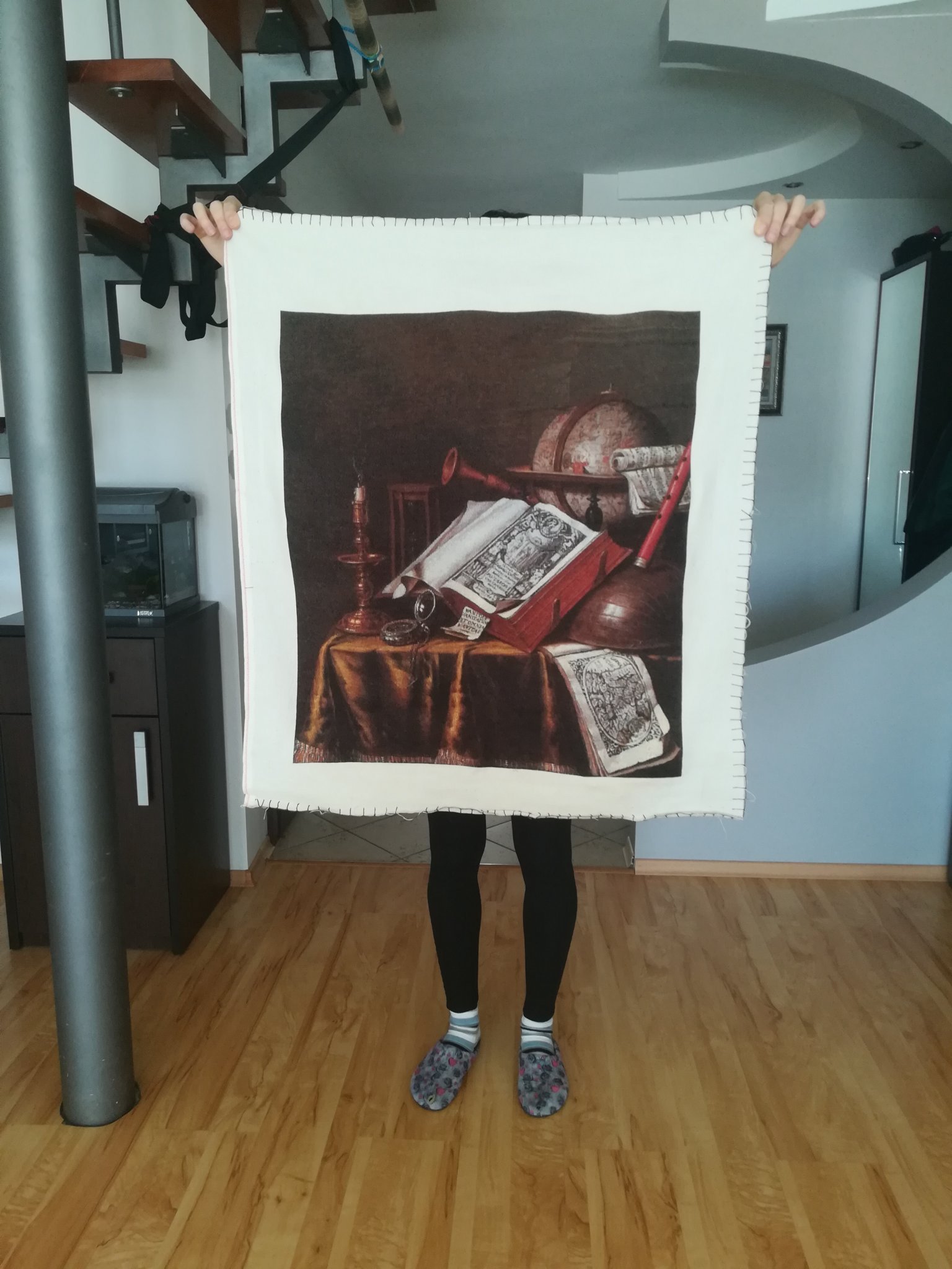 за подарък е. Отвикнала съм да шия гобленов бод и на ситна панама и в комбинация със светлата гама цветове и признавам много ме мъчи, но си я шия с добро чувство, защото знам, че човека много ще я оцени .