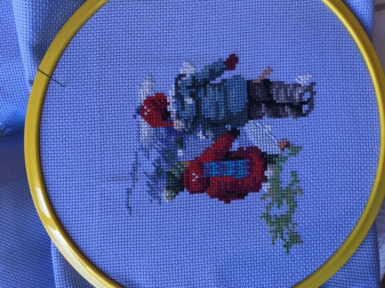 Дамата чиято снимка публикувах ми прати схемата , тя преди години показваше етапи в гоблени.ком нямам основание да се съмнявам , че е шила по друга схема.