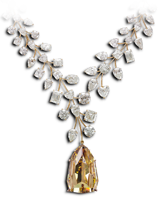 Огърлицата е изключително красива, но най-силно впечатление прави огромният жълт диамант, наречен „Несравнимия“. Скъпоценният камък е с размерите на яйце.