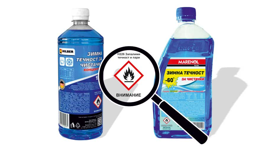 Тази, горепоказаната в лявата бутилка е на фирма Hilber, висококачествена течност за чистачки без вредни добави, и е с повече от 70% спирт, тя е зимна течност. Тази може да се ползва да почистване на брави, бутони на асансьори и подобни. Без примеси е, е и много подходяща. Това което споделям , първо съм проверила и след това съм го публикувала, точна тази ползвам, а и най-важното е, че к- вото е много.