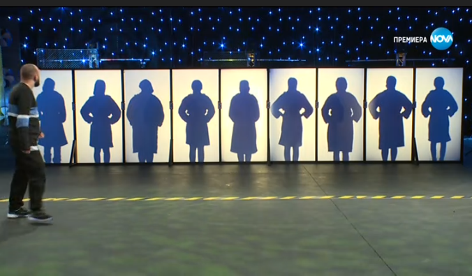 Ами те освен, че ги бяха обвили в халати... да не им познаеш форминте, ами основното, което подсказва - прическата, и това беше скрито, с каски на главите... пардон найлонови шапки, така че да не подсказва за никаква прическа.  Едно време имаше по БНТ (Първа програма на БТ) едно предаване в събота сутрин "Добро утро" и там пускаха силует така, да се разпознава. Ама прическата си беше както  си е, не скрита под шапка https://youtu.be/4DWht9W2dy4?t=48