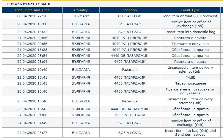 Update: От пощата ми се обадиха и казаха, че пратката е заминала за Германия и служителката, която е нова,  е наказана, вкл. да ми възстанови парите, но аз помолих да премахнат финансовата снакция. Говорих с DHL България официално и неофициално (познат). Официално ми казаха, че щом пратката се обслужва от БГ пощи няма как те да направят нещо по въпроса. Неофициално ми казаха, че няма да може да се направи нищо, защото транспортът, за който е платено, вече е "изразходен" и няма как да се придвижи така да се каже "безплатно". От iherb ми писаха, че са ескалирали моя проблем и до 24 часа ще получа отговор.