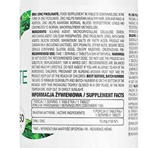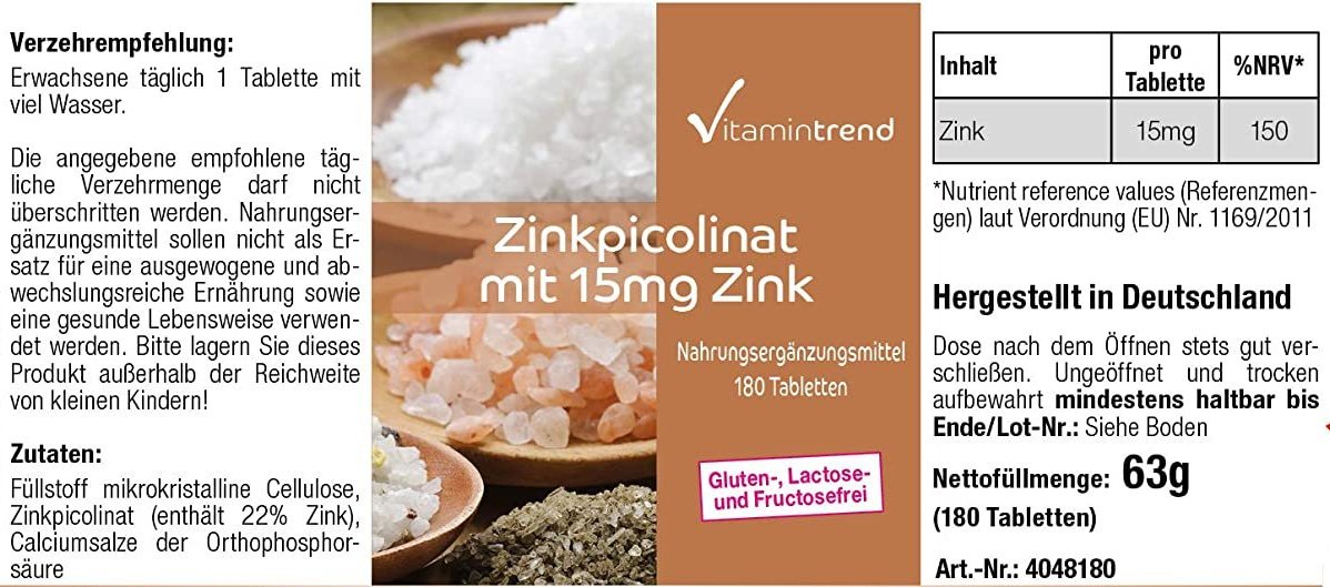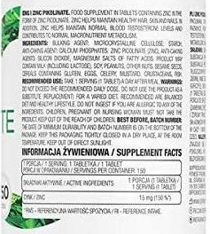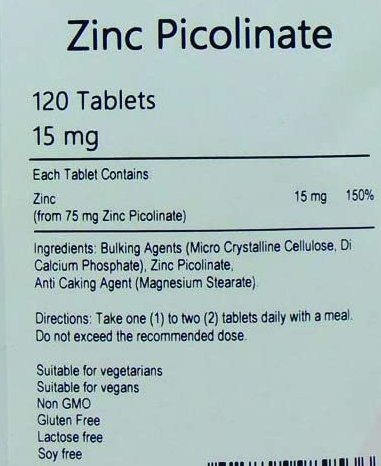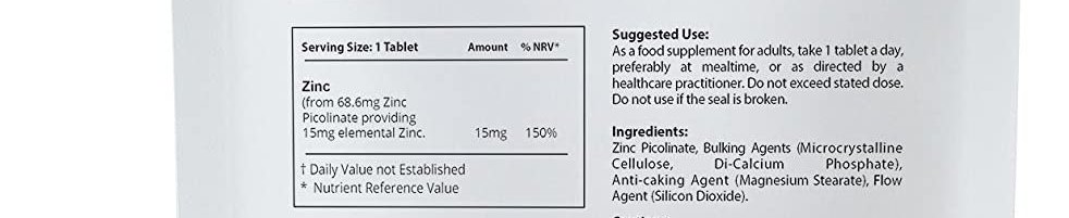 15mg zinc (elemental content) - recommended daily dose: 1 tablet