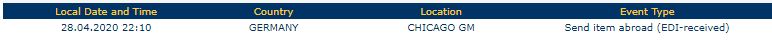 Там проследяването ми стои така, което не съм сигурна какво означава (може би че чака изпращане към Германия?):