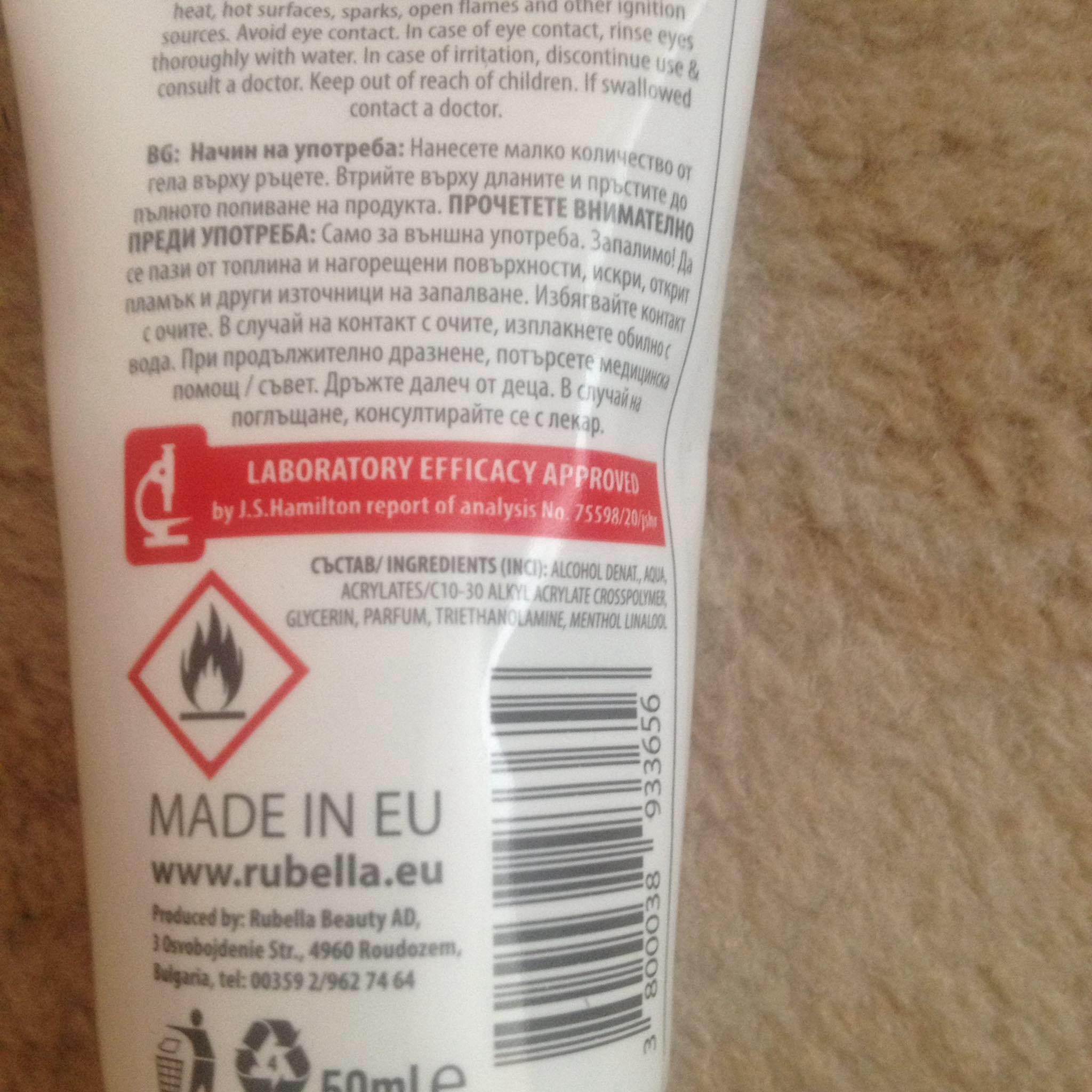 На бялата тубичка наистина пише Helps fight, освен това отдолу пише Hygiene Hand Gel и само with alcohol, без процентите.