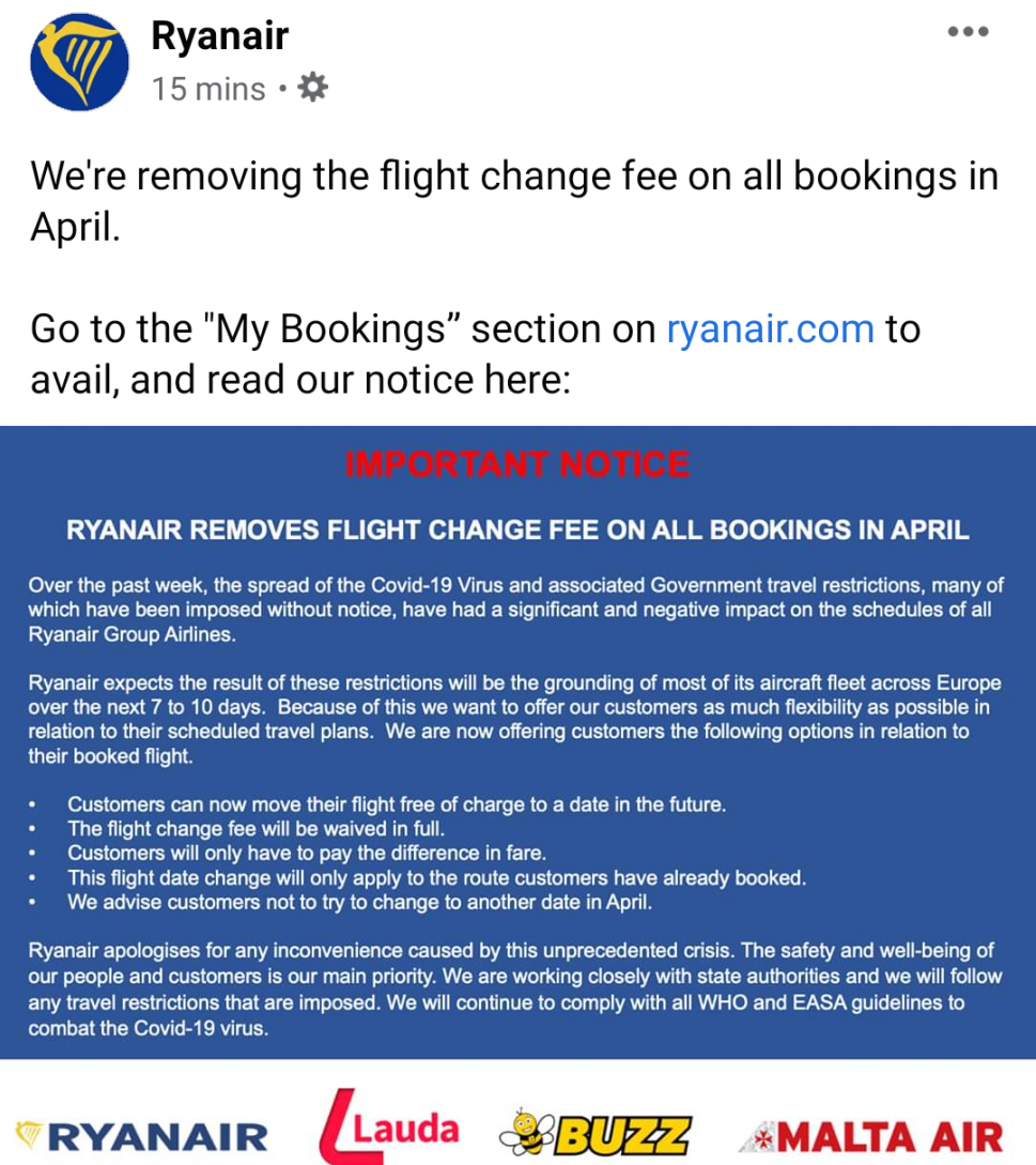 Go to the "My Bookings” section on ryanair.com to avail, and read our notice here: