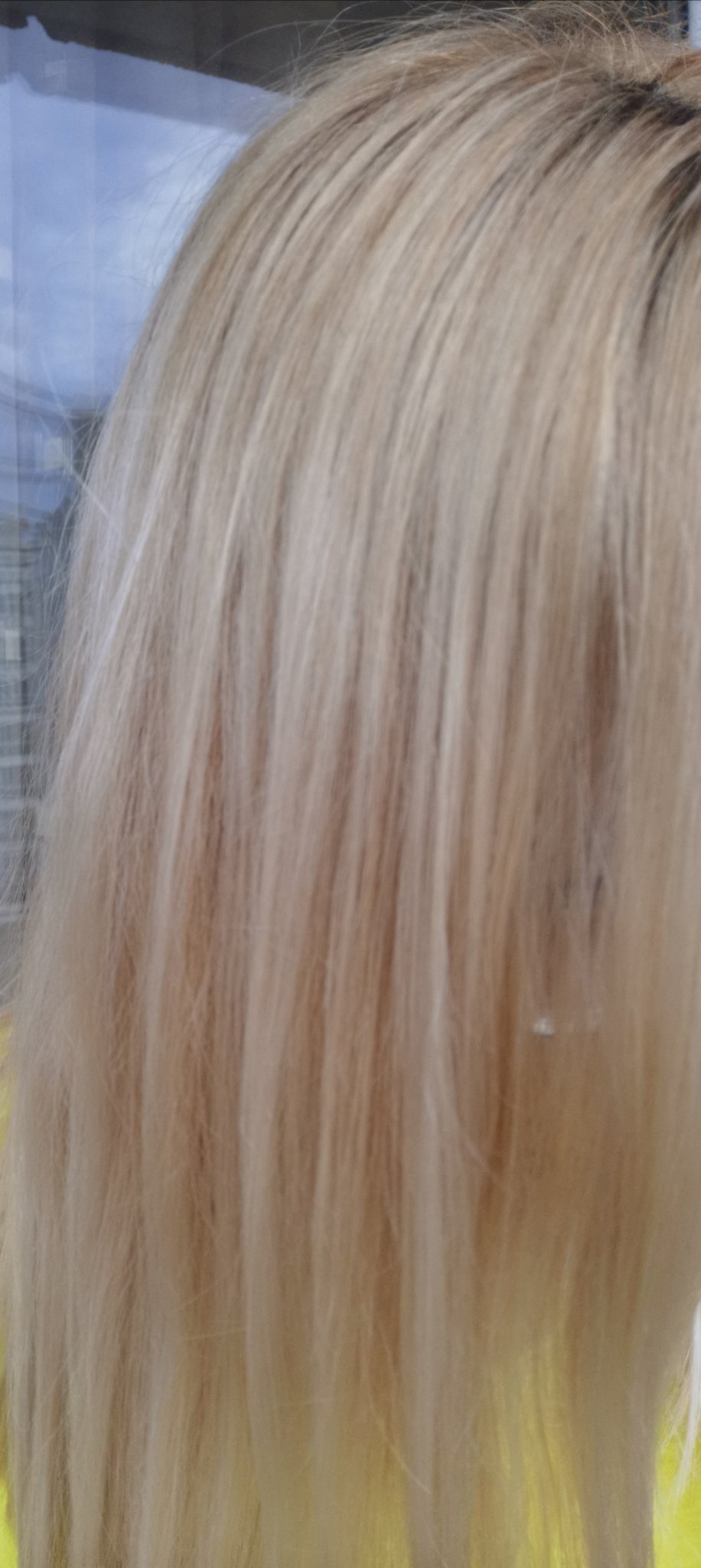 Това са моите дължини и корена се вижда, само с тази боя. Това е при положение, че не правя матирания, обливки и прочие, 1 път в месеца шампоан евентуално brass off, момичетата тук писаха за него. В средата на косата се е получил на снимката някакъв оранжев отблясък няма такъв, цвета е равен. Ако се старая повече, цвета ще е перфектен. Да, винаги има някаква разлика корена, но с всяко следващо боядисване тя се покрива.