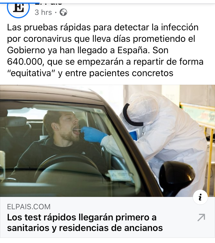 Испания е 46 милиона, тази новина беше само за една автономна област ако не се лъжа. Да, правителството все обещава... и на края изпратили 640 000 теста, то си е подигравка !!