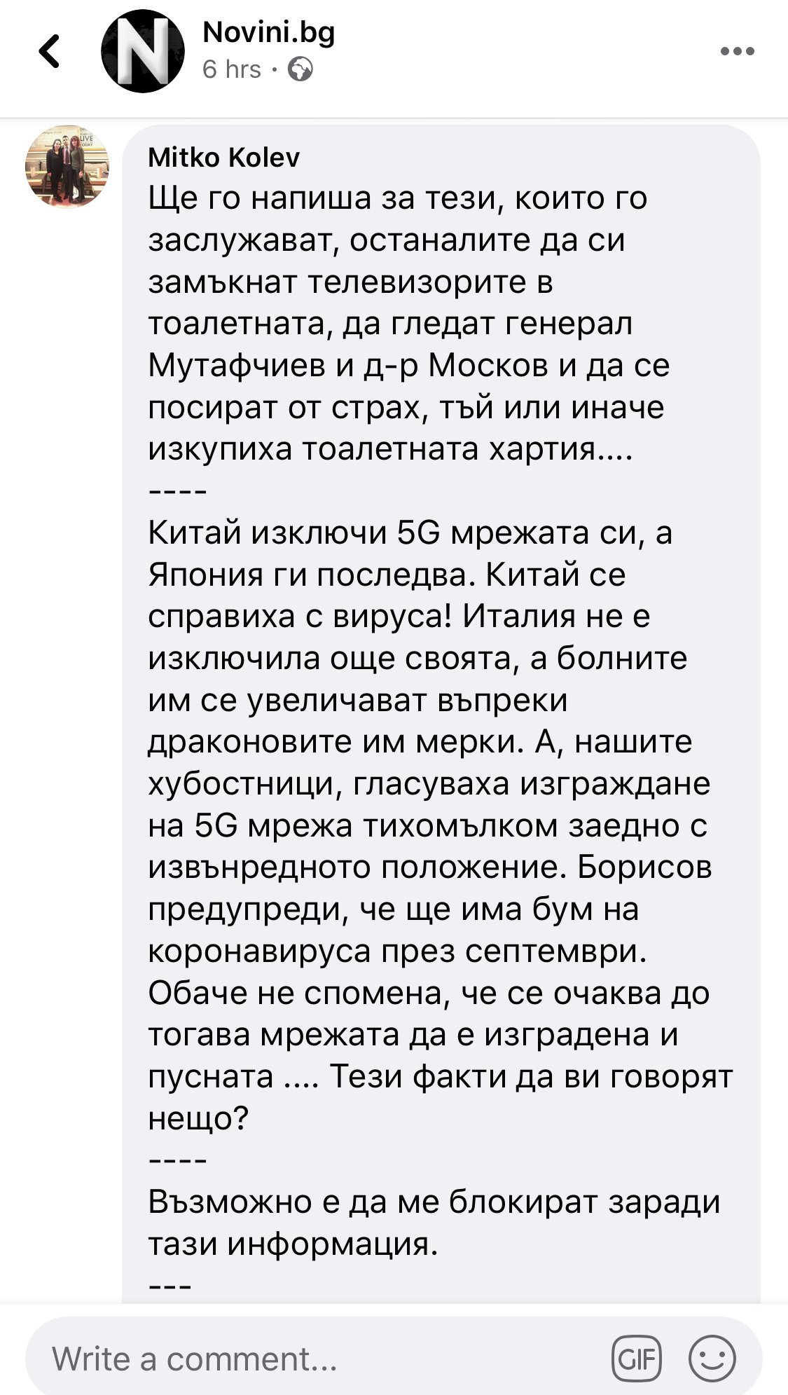 5Г мрежата му била виновна. Заради такива многознайковци много хора в България ще умрат от този вирус. Най-опасното в момента е да НЕ слушате предупрежденията и да НЕ спазвате мерките, които се предлагат. Обричате себе си и много други.