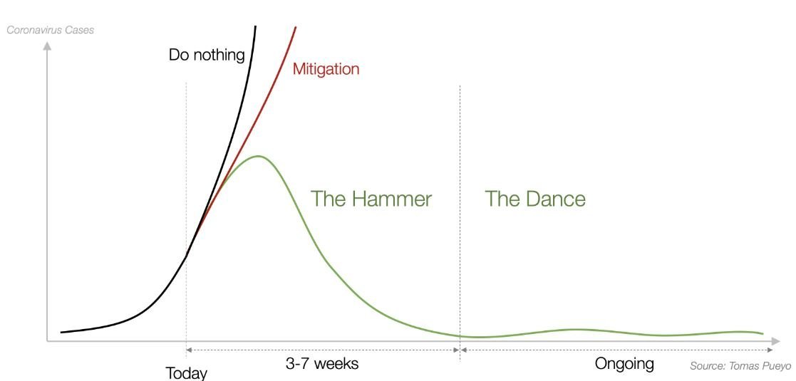 Вирусът го спират/забавят с много тестове и карантина.