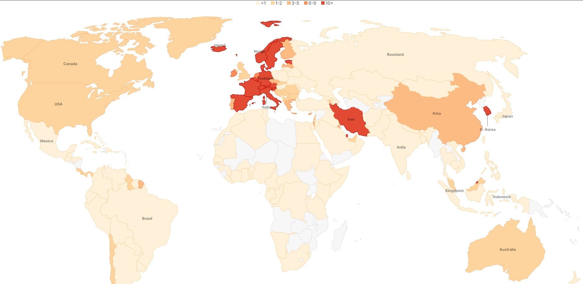 След това Норвегия са 3-ти по разпространение на глава от населението. Следват Испания и Иран (Иран според мен е по напред, те не дават истински данни, но каквото е в стат. това може да се коментира.) А Китай на глава от населението са далеч назад, но са пред нас: 20-и.