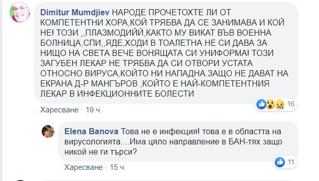 Мисля, че много хора не оценят сериозността на положението. В петък в магазина един възрастен мъж ми се скара, че съм с маска, смешно било, всявала съм паника, заради такива като мен изкупували магазините и т.н. Около мен младежите на около 20 г. тънко се усмихват под мустак и заявяват, че няма да носят маски брааат, щото само дъртите изгарят и т.н....