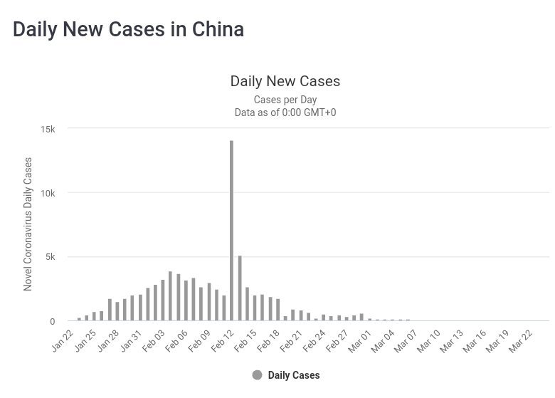 Китай https://www.worldometers.info/coronavirus/country/china/ нещата приключиха, или поне намаляха почти до нула за 40 дни