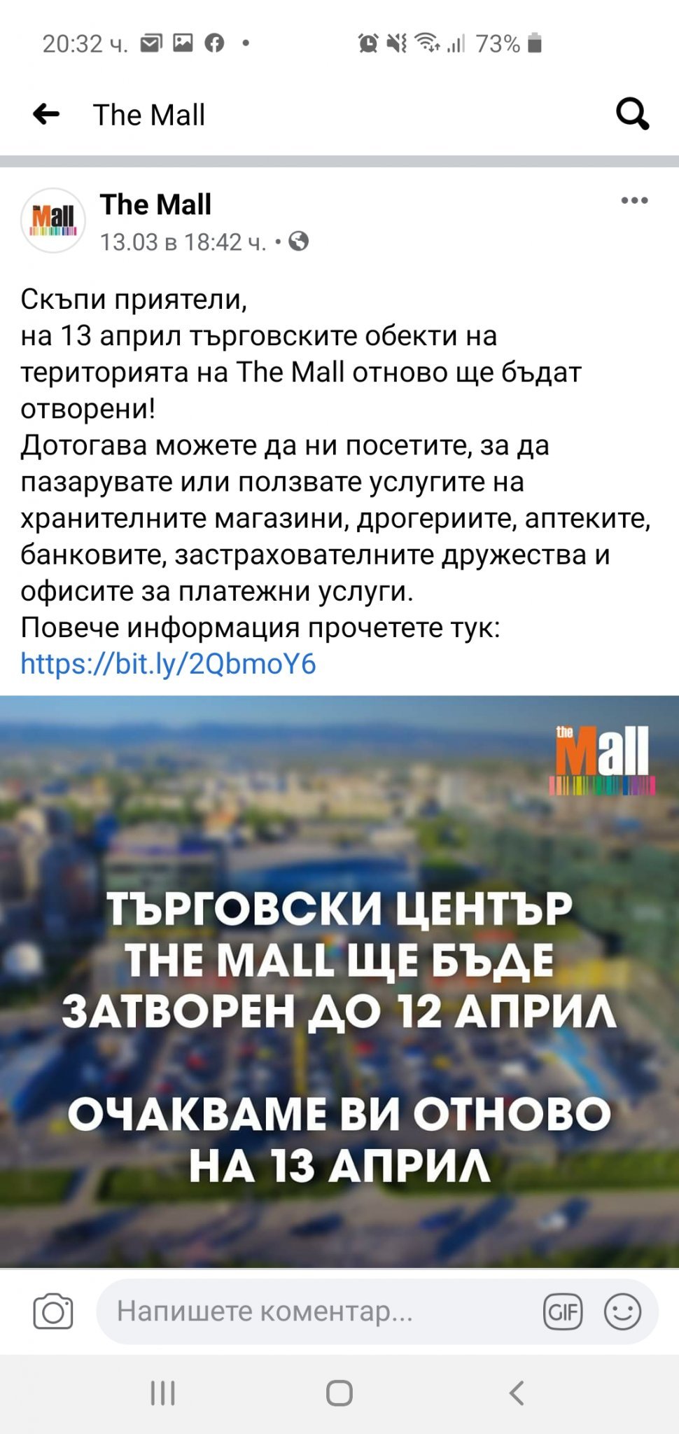 Съвсем скоро всички търговски обекти в The Mall ще отворят отново врати за вас! Докато това се случи, хранителните магазини, дрогериите, аптеките, банките, застрахователните дружества и офисите за платежни услуги, изброени на списъка, остават на ваше разположение!