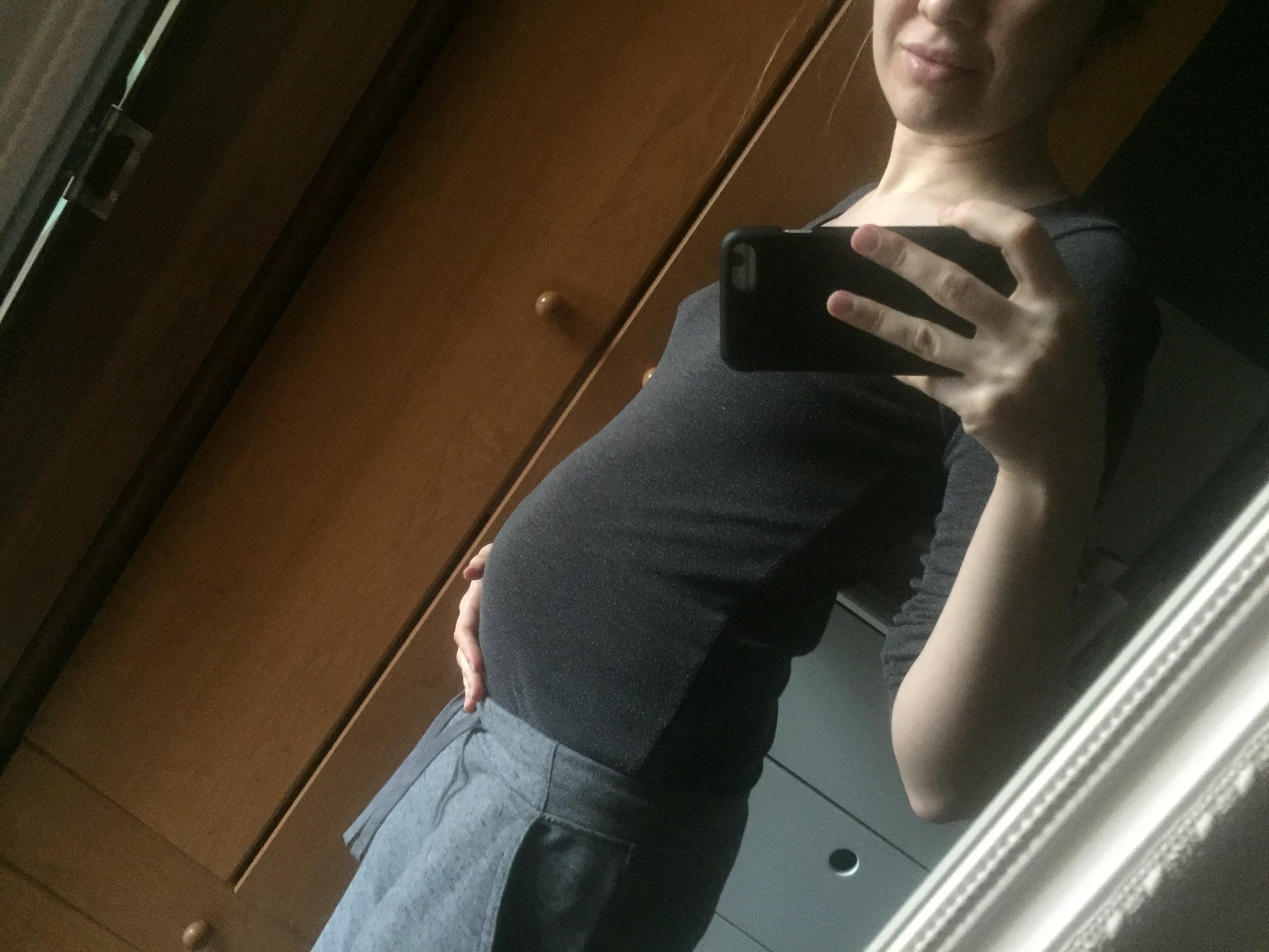Разбира се, ако не бях леглала по гръб и не си бях сложила ръката отгоре нямаше да го усетя. Вече ми е много лесно като съм по гръб да го усетя къде е, та в продължение на няколко минути усетих 4-5 подритвания, после и моя мъж усети едно. Много миличко ми стана