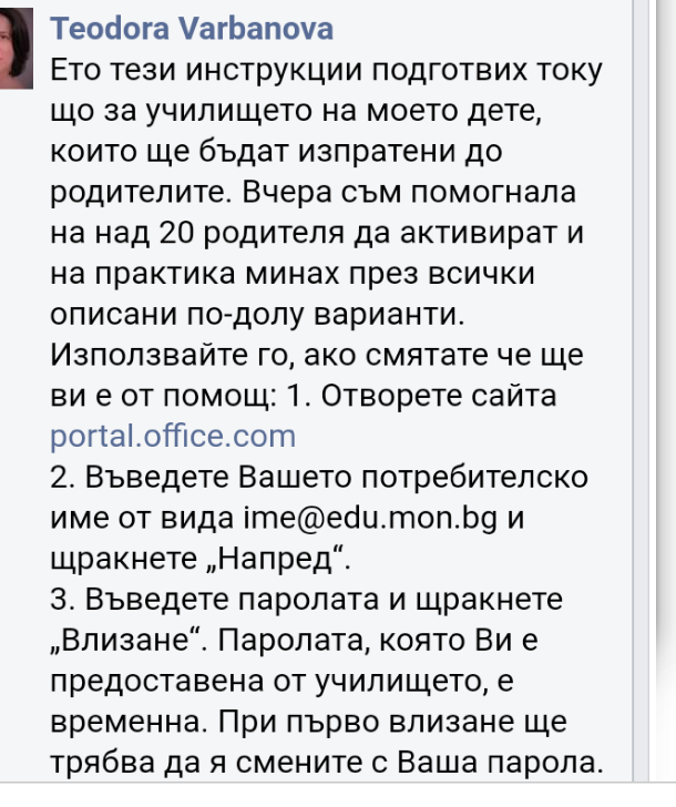 Ползвам Офис365 с учениците си от няколко години, продължих и при дистанционната форма, започнахме с Тиймс сега и нещата се получават. Повечето ми колеги също се ориентираха и работата върви, просто трябва малко време, да се ориентират в ситуацията, да организират учениците, да разучат приложението и това да го свършат между другото при готвене на уроци, даване на справки, отговаряне на въпроси на ученици и родители и помагане на колеги.