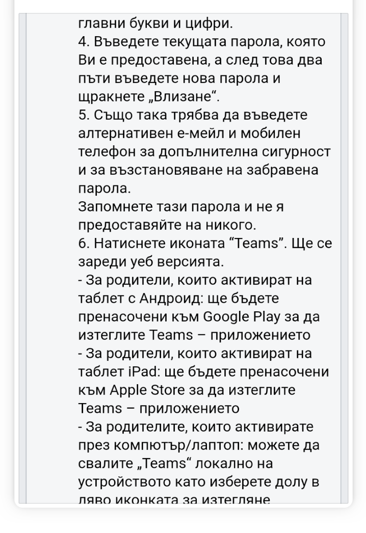 Рибата се вмирисва откъм главата.Отгоре никой не поема отговорност да спусне заповед към директорите на училища как(чрез коя платформа) да си гледат работата, значи им казват "оправяйте се".В добрите училища децата учат по програмата си, без истерии, стрес и т.н., имат виртуални кл. стаи, но там някой се е потрудил да задвижи нещата, а в повечето "училища" се занимаваме с фейсбук и вайбър като последни чалгаджии и имитираме дейност.Защо все по трудния начин трябва да става?Просто е-като нямат в екипа на училището дори един грамотен относно регистриране и въвеждане на платформата, да наемат читав човек(с дълга пола), да им свърши работа.Няма да е скъпо, става бързо, всички ще учат, няма да кипи безсмислен труд, всяка змия ще си знае терариума.