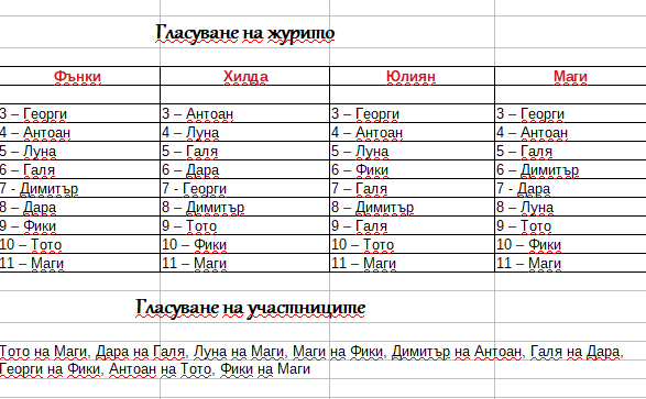 Как да ги разбера като Дж- дж нито пя, нито направи нещо артистично, но Хилда му даде 7 или 8 не помня точно.